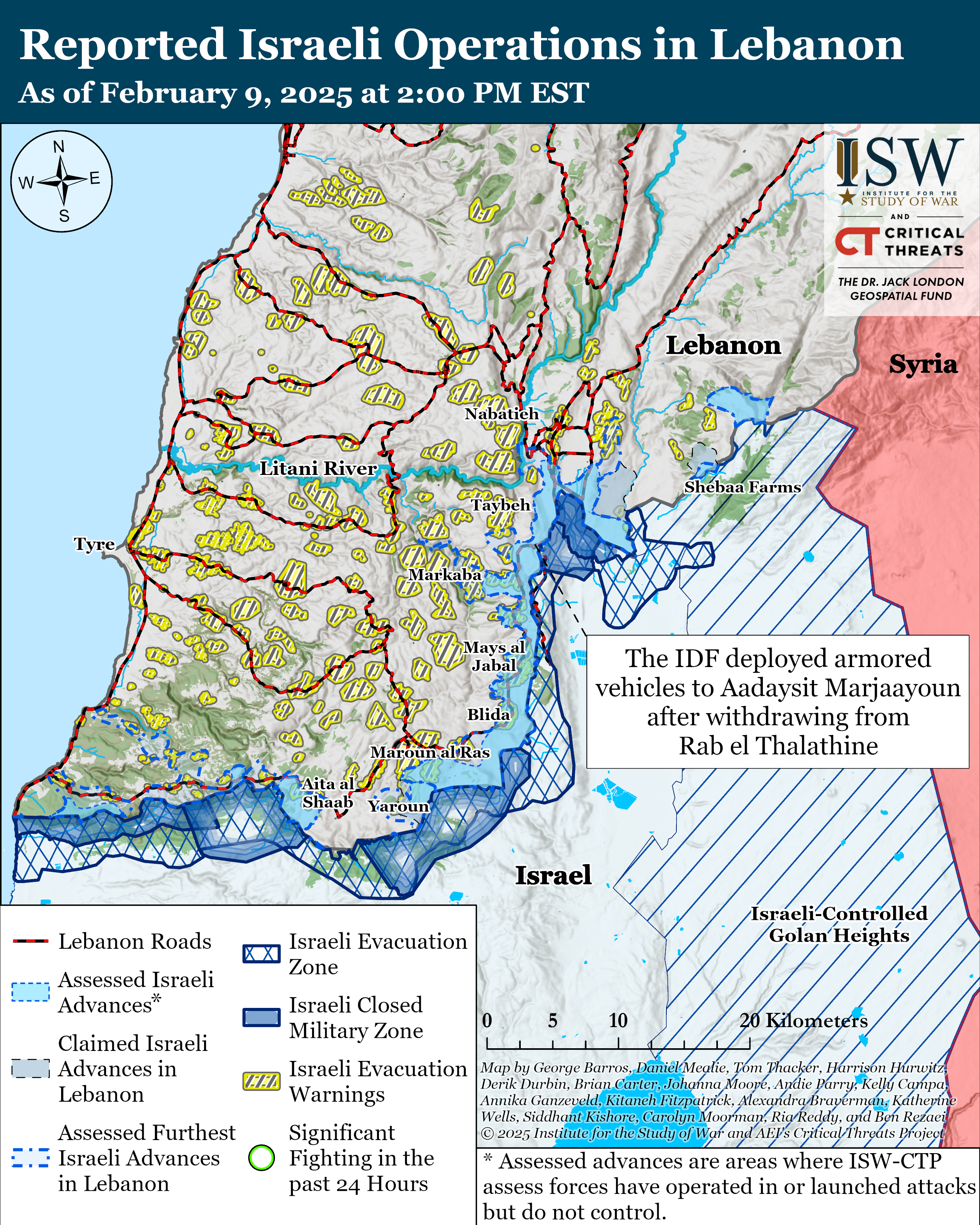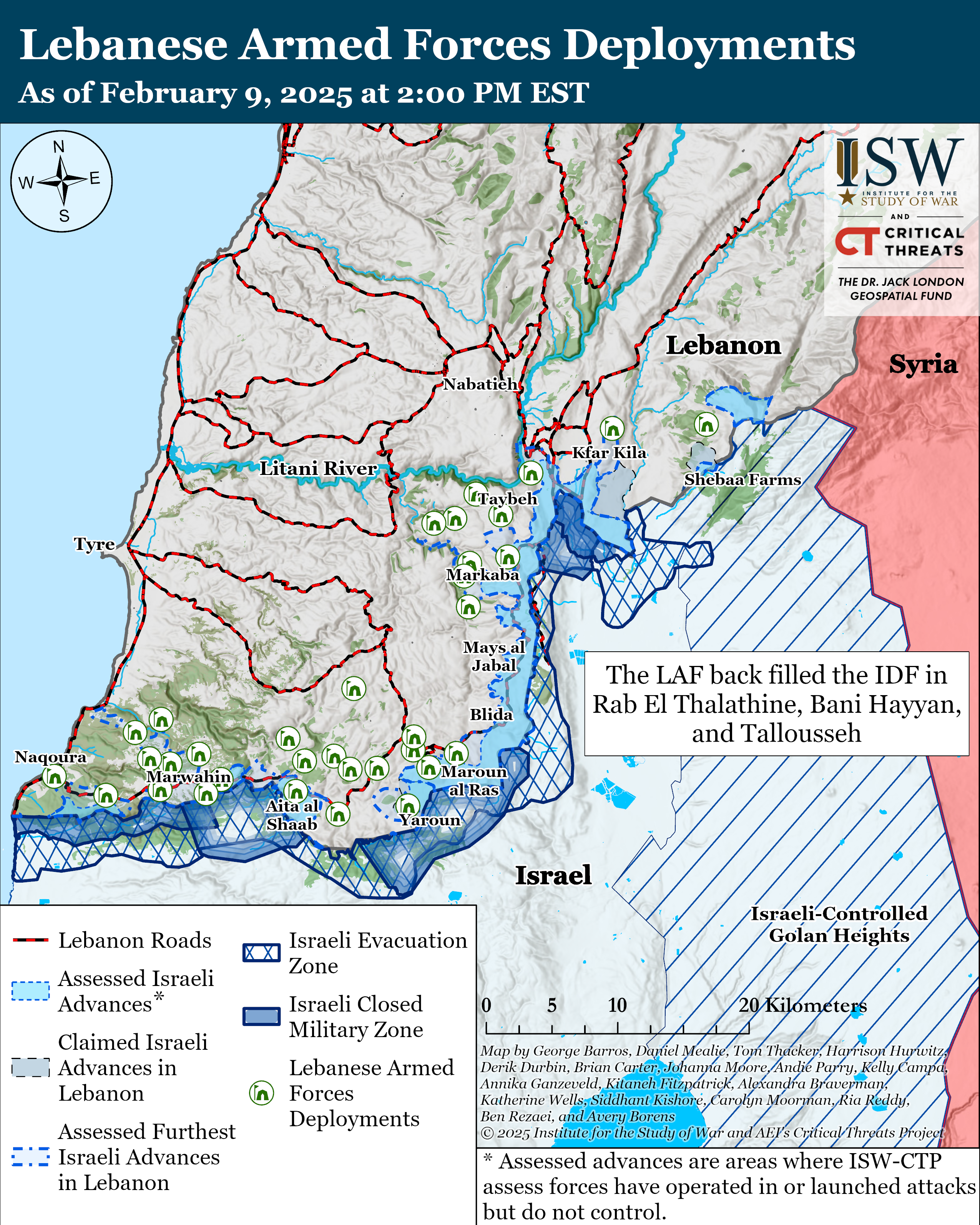 The LAF back filled the IDF in Rab el Thalathine, Bani Hayyan, and Tallousseh in southeastern Lebanon on February 9.[42]