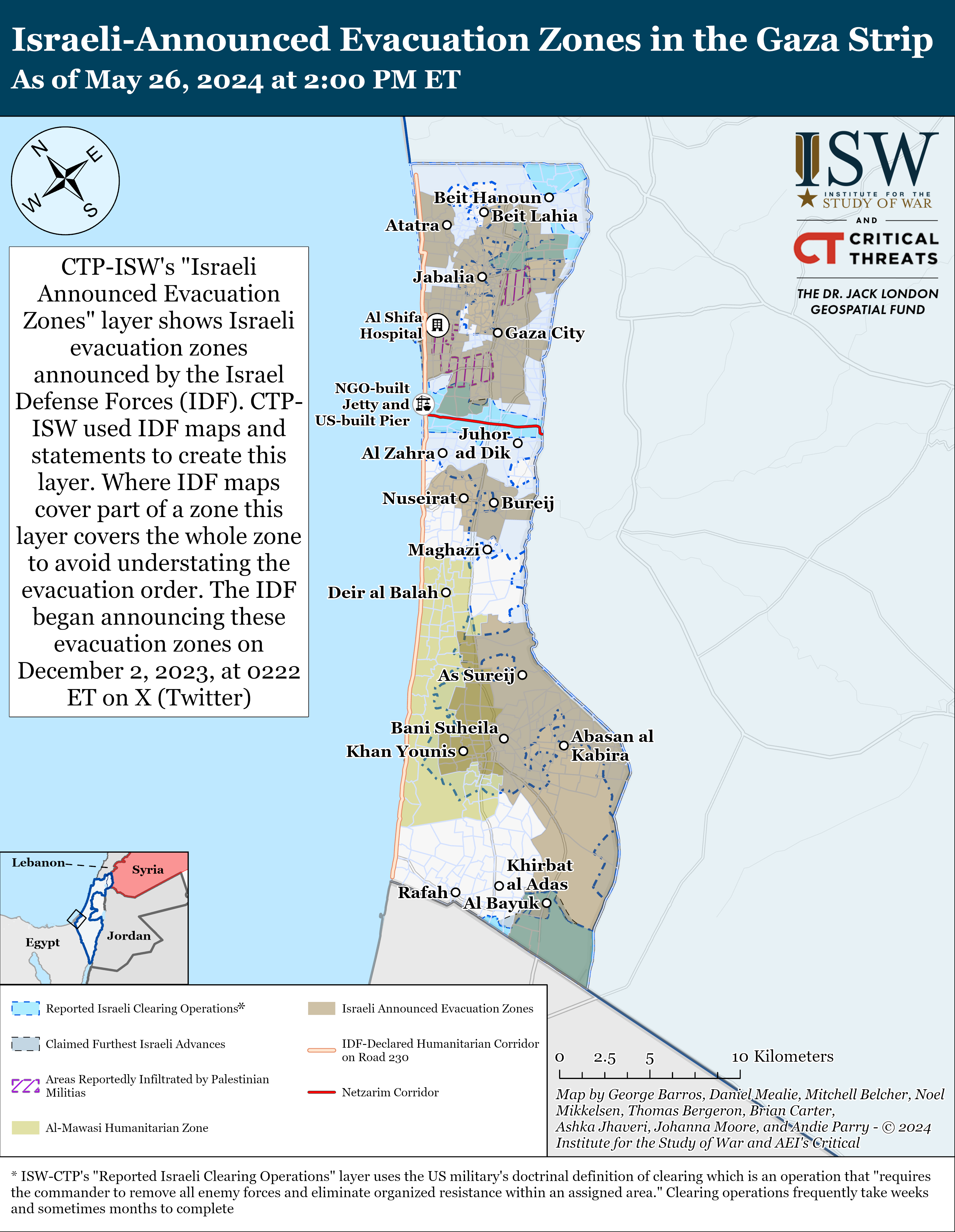 CTP-ISW will publish abbreviated updates on May 25 and 26, 2024. Detailed coverage will resume on Monday, May 27, 2024.