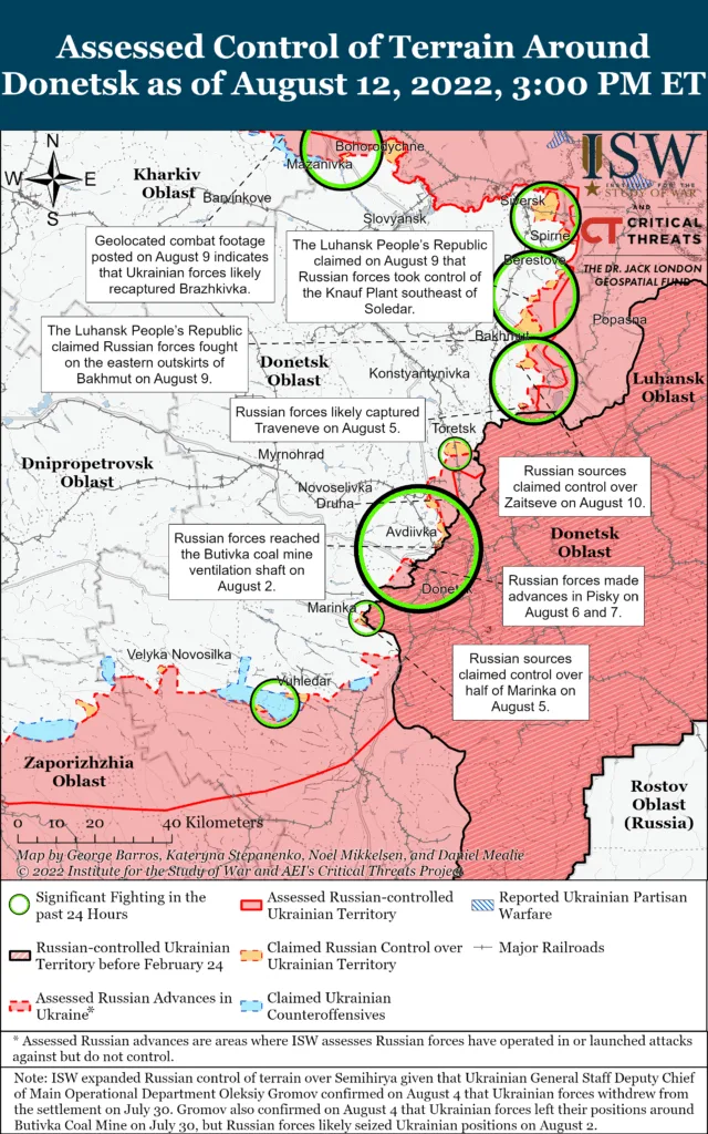 Assessed Control of Terrain around Donetsk as of August 12, 2022, 3 PM ET