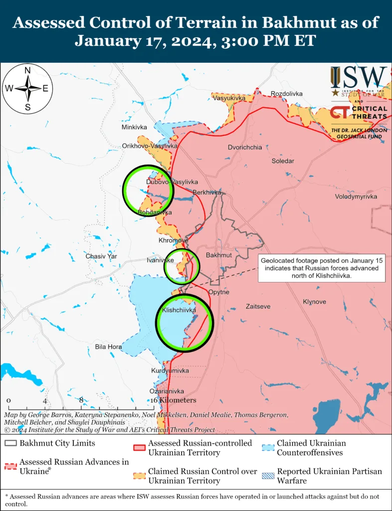 Assessed Control of Terrain in Bakhmut as of January 17, 2024, 3 PM ET