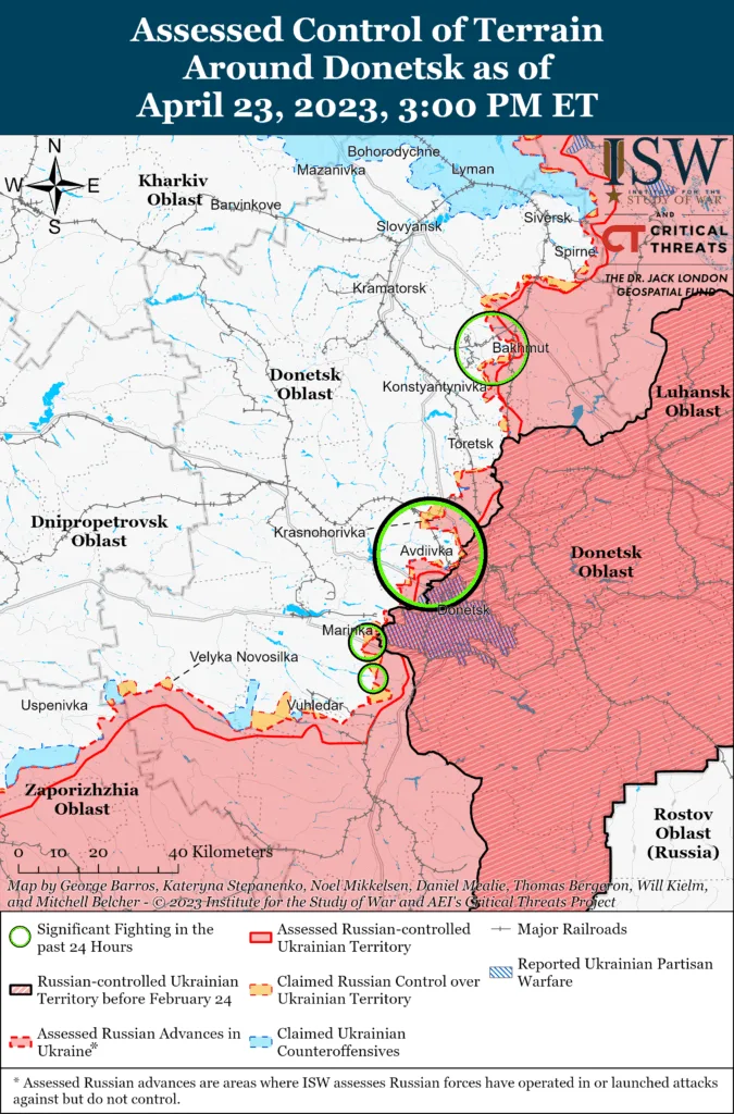 Assessed Control of Terrain Around Donetsk as of April 23, 2023