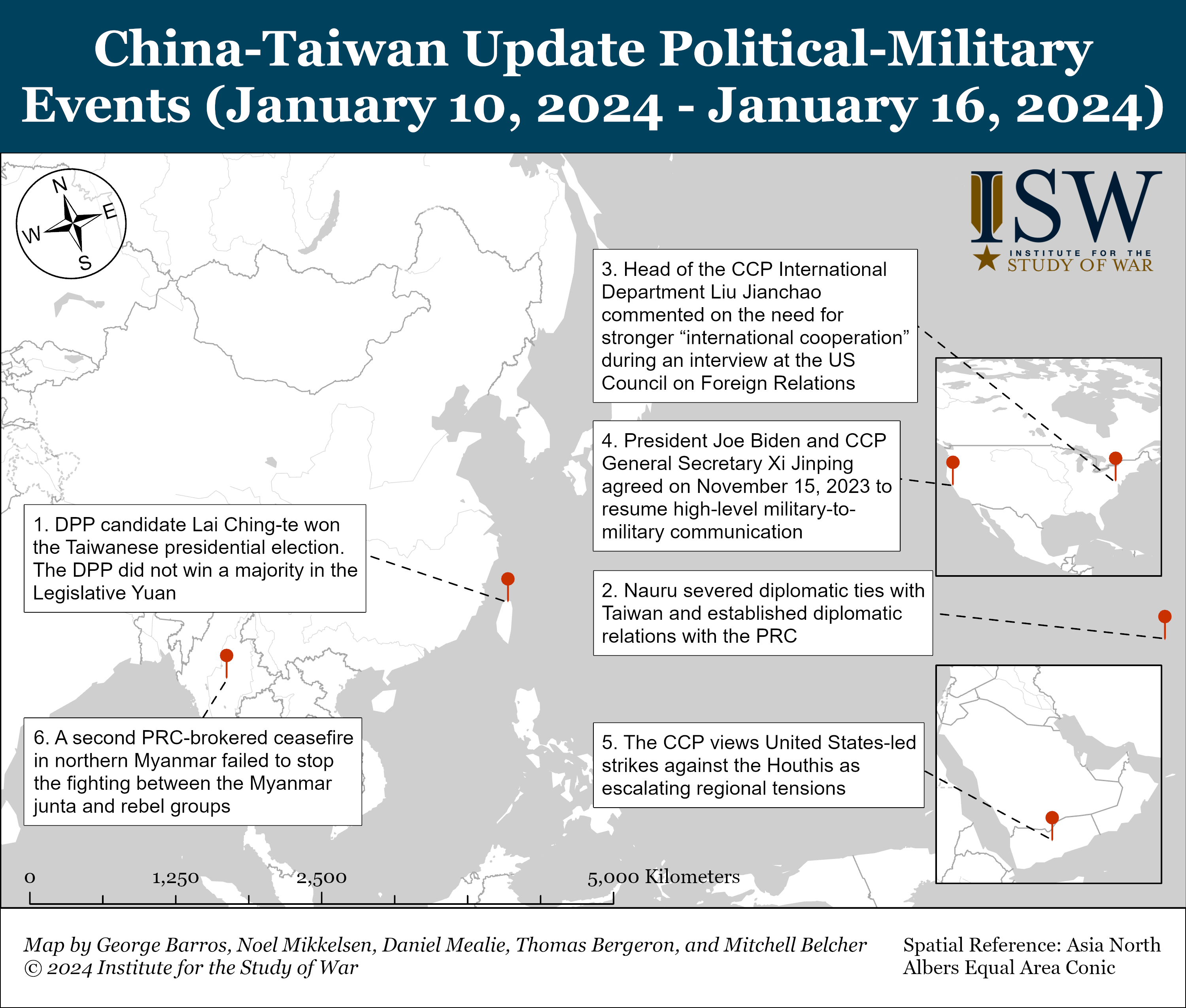 - Democratic Progressive Party candidate Lai Ching-te won the Taiwanese presidential election on January 13. The DPP did not secure a majority in the Legislative Yuan and will face opposition from the KMT and Taiwan’s People’s Party in the legislative body.