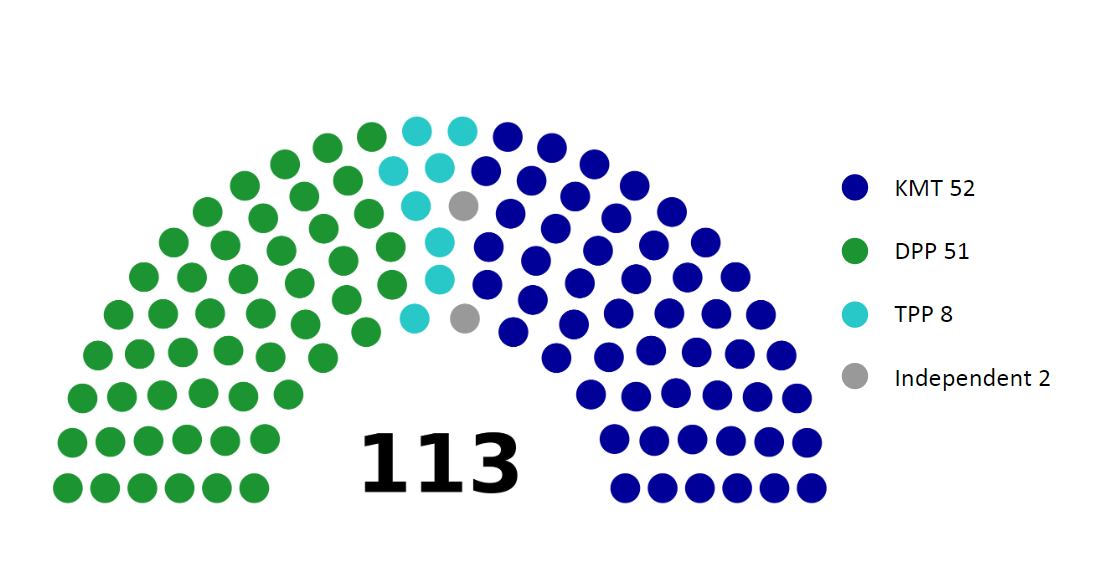 The DPP did not secure a majority in the Legislative Yuan and will face opposition from the KMT and Taiwan’s People’s Party (TPP) in the legislative body. None of the three major parties won a majority through the legislative elections. The DPP won 51 seats, which is a 10-seat loss compared to the last election. The KMT gained 14 seats for a total of 52, putting it ahead of the DPP by 1. The Taiwan People’s Party (TPP) secured 8 seats, which positions it to play a decisive role on divided issues in legislative decision-making. Two independent candidates who are aligned with the KMT also won seats.[6] A divided legislature will pose challenges for the incoming DPP administration’s ability to pass legislation. The DPP last led a minority government under President Chen Shui-bian from 2000 to 2008, during which the KMT-led opposition frequently blocked arms procurement from the United States, for example. The KMT-led opposition also blocked other policy initiatives, such as amendments to voting laws and regulations governing party assets and state-owned property.[7]