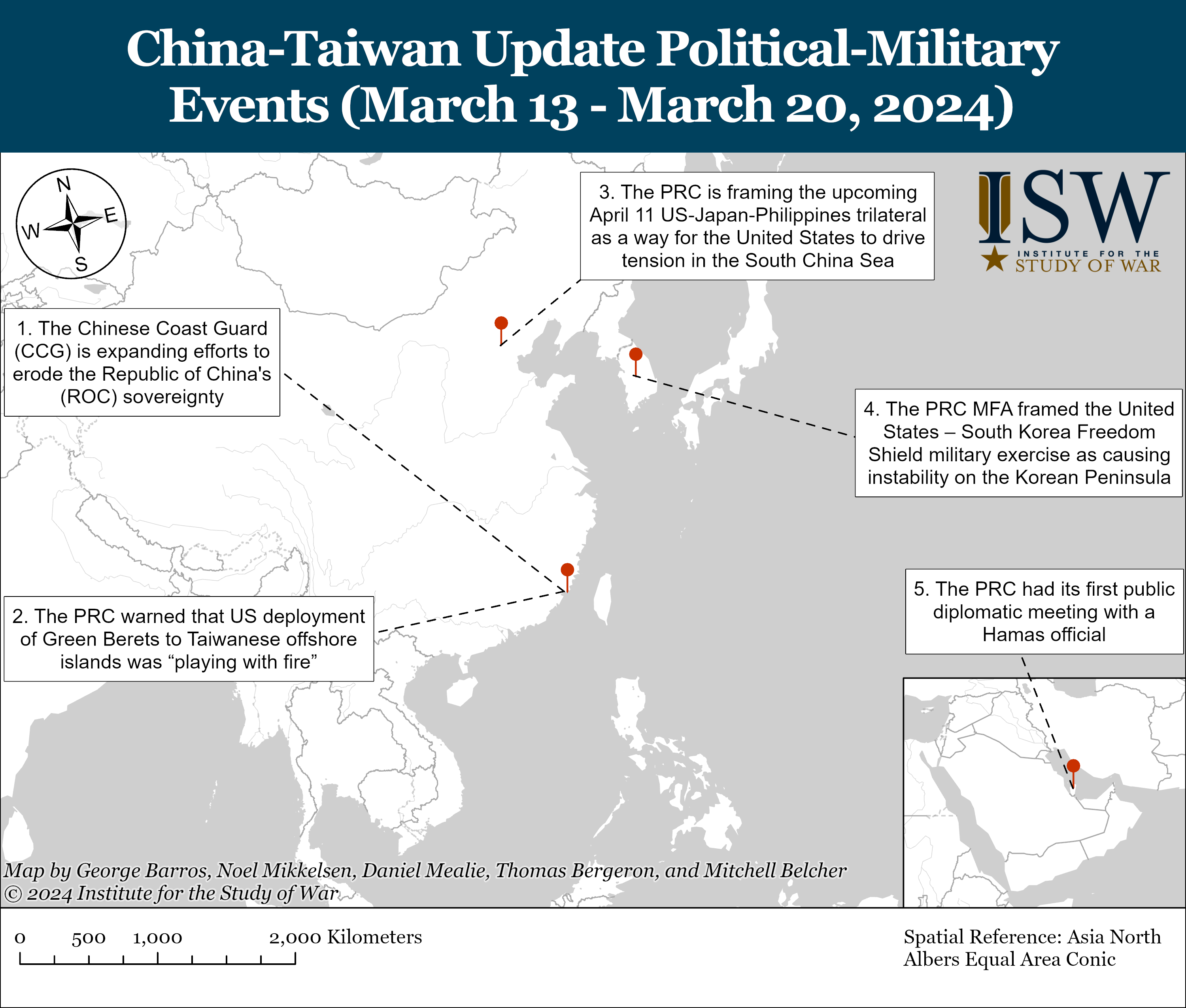 - The PRC had its first public diplomatic meeting with a Hamas official and its first diplomatic visits to Israel and Palestine since Hamas’ attack on Israel on October 7.