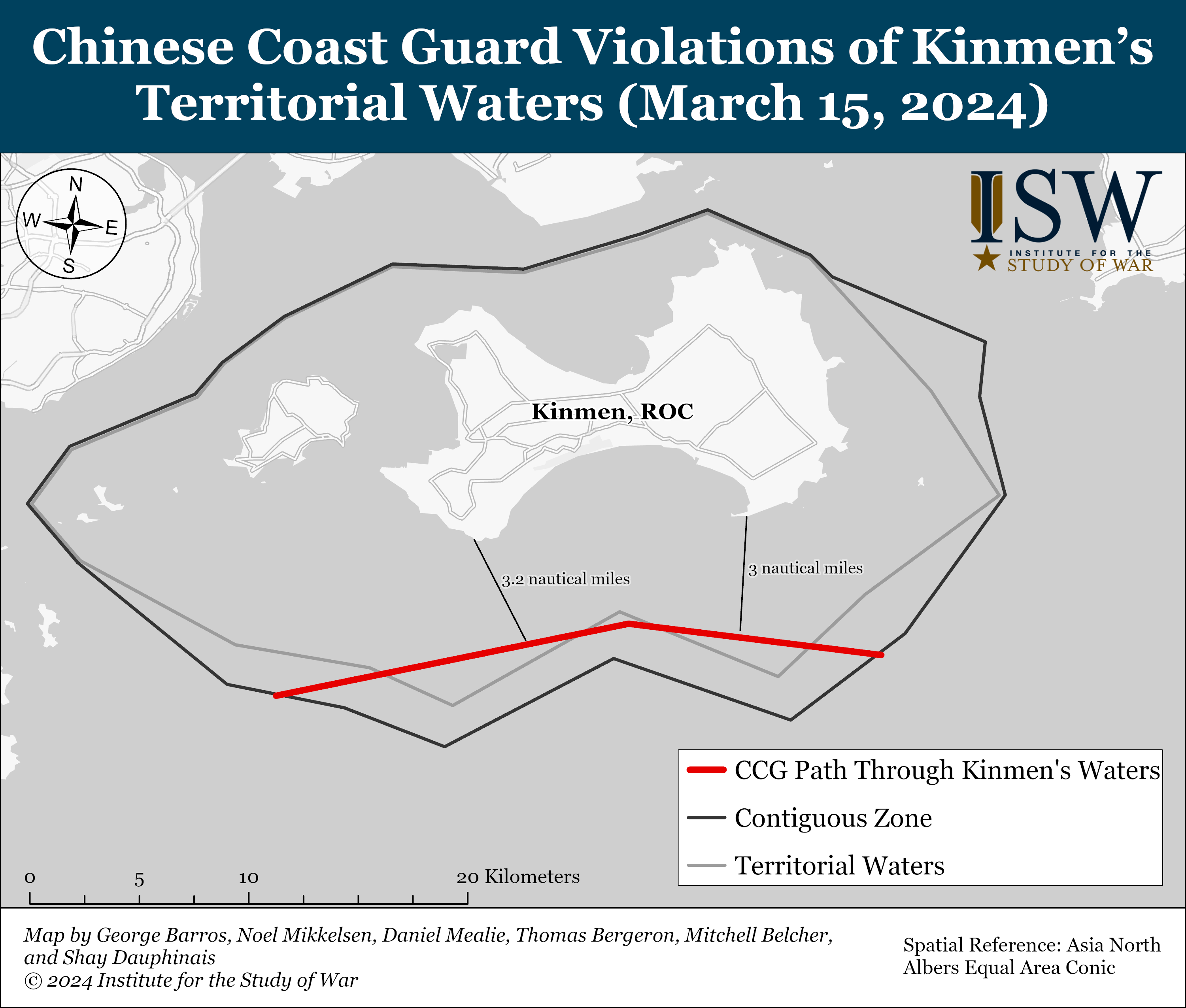 - The Chinese Coast Guard (CCG) is expanding efforts to erode the Republic of China’s (ROC) sovereignty around Kinmen Island.
