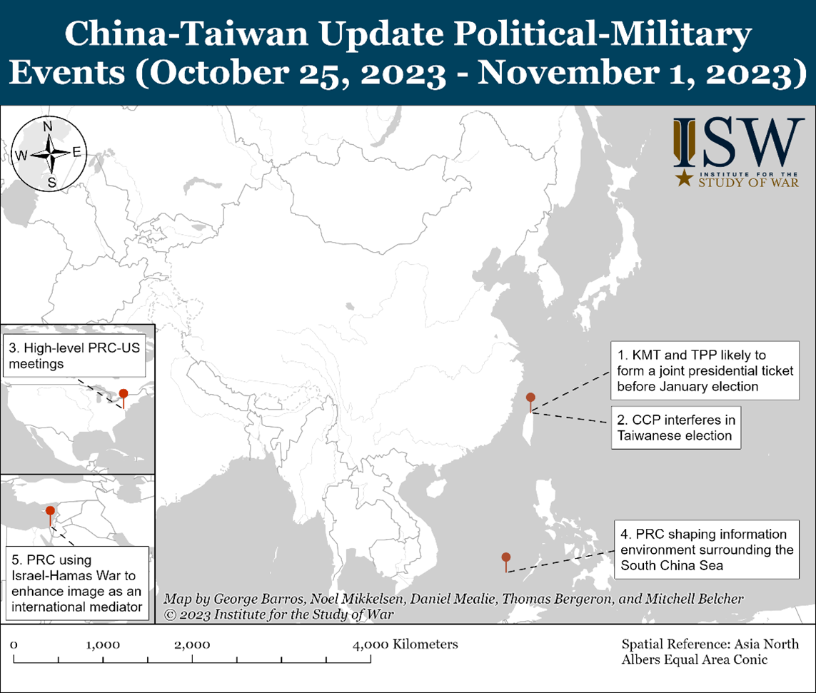 - The Kuomintang (KMT) and Taiwan People’s Party (TPP) agreed to cooperation in the legislative elections and will likely form a joint presidential ticket before the January 13 presidential election.