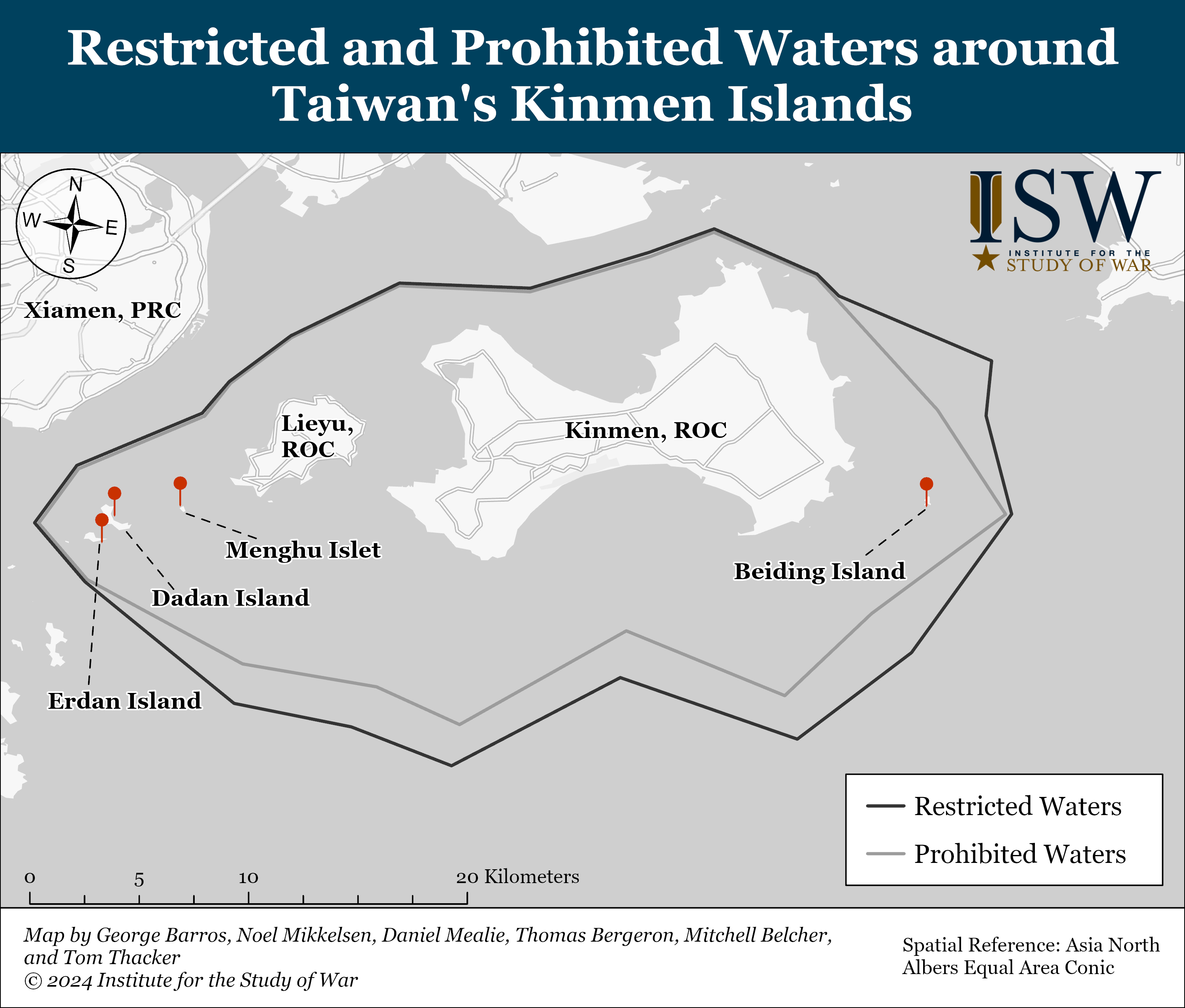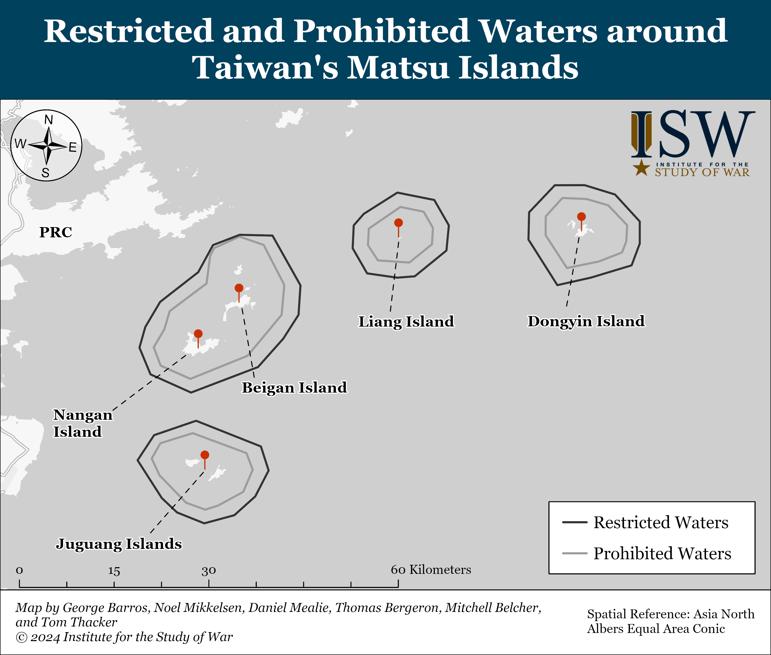 A similar series of events around Taiwan’s Matsu Islands could lead to the PRC capturing those islands in a similar fashion. ISW has observed far fewer PRC activities around Matsu (compared to Kinmen) to support such a campaign, however.