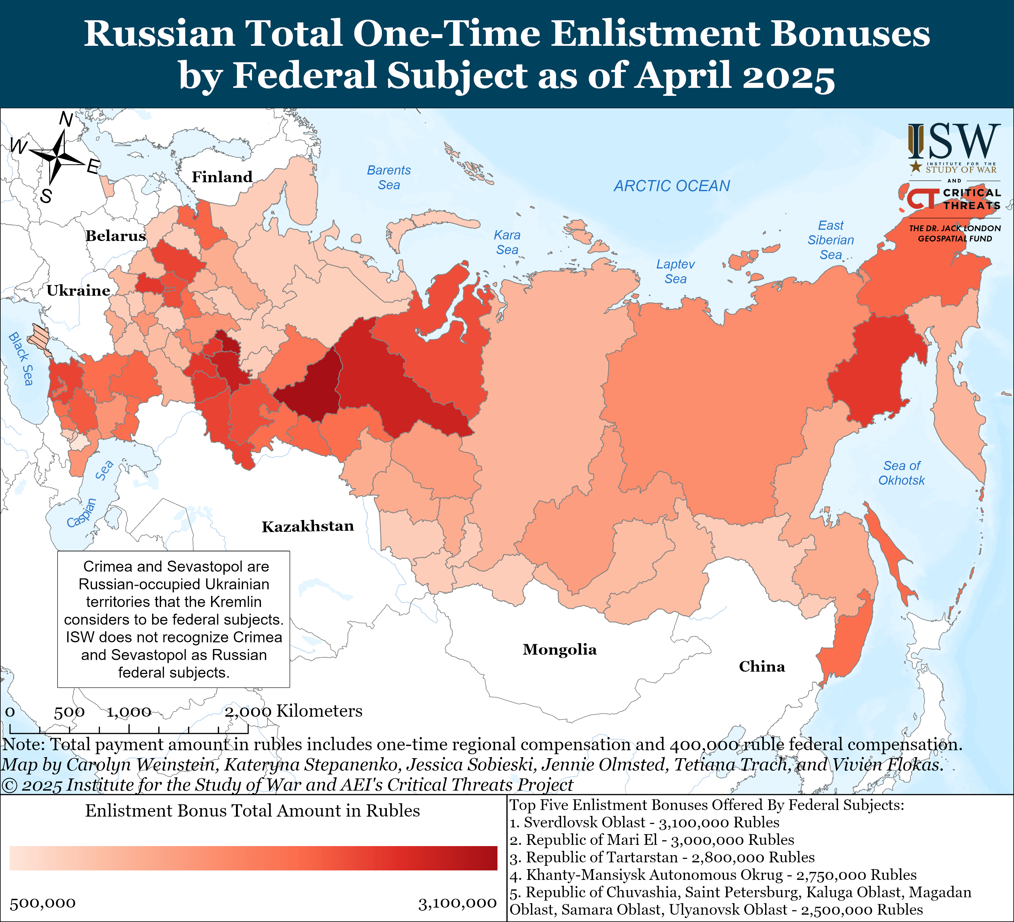 - Russian federal subjects continue to use dynamic pricing for one-time enlistment bonuses to incentivize volunteer recruitment.