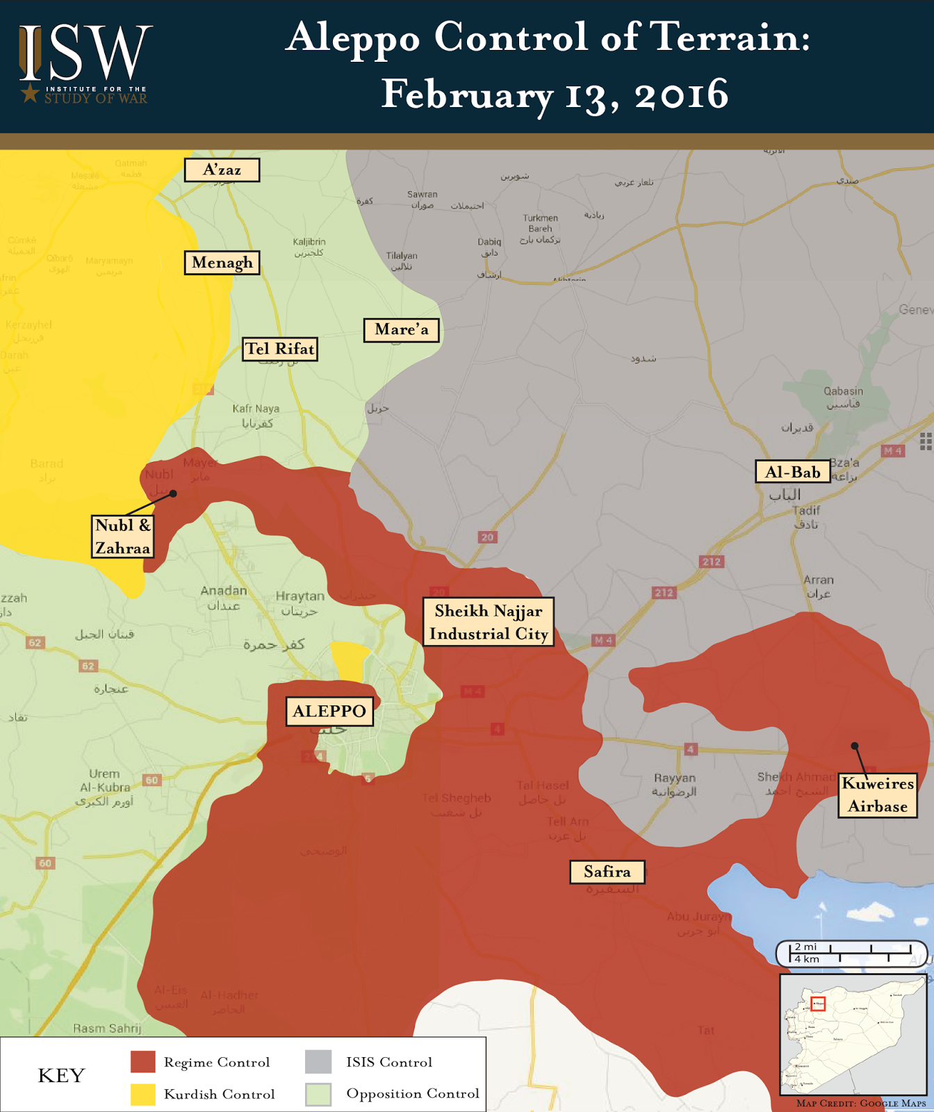 The U.S. has a short time frame in Aleppo to prevent the upcoming humanitarian catastrophe and preserve opposition groups the U.S. needs in order to destroy ISIS and Jabhat al Nusra in the long term. The Aleppo-based opposition remains relatively independent and therefore offers the U.S. a promising source of ground forces against Jabhat al Nusra in Northern Syria. Opposition groups that receive covert U.S. support are still among Aleppo’s powerbrokers and potential powerbrokers. The regime’s advance in Aleppo poses an existential threat to these opposition forces, however. Jabhat al Nusra will use the defense of Aleppo as a vehicle to overwhelm opposition groups that are acceptable to the West and entrench itself within the civilian population. The collapse of the opposition in Aleppo, either in a surrender to the regime or in a merger with Jahbat al Nusra and Ahrar al Sham during a siege, would remove options to achieve American objectives in northern Syria.