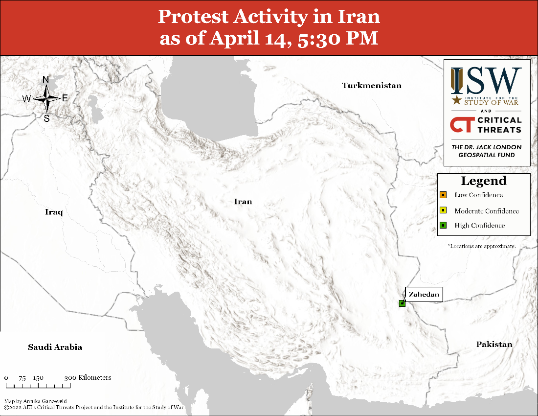 At least one protest occurred on April 14. CTP assesses with high confidence that one protest occurred in the following location: