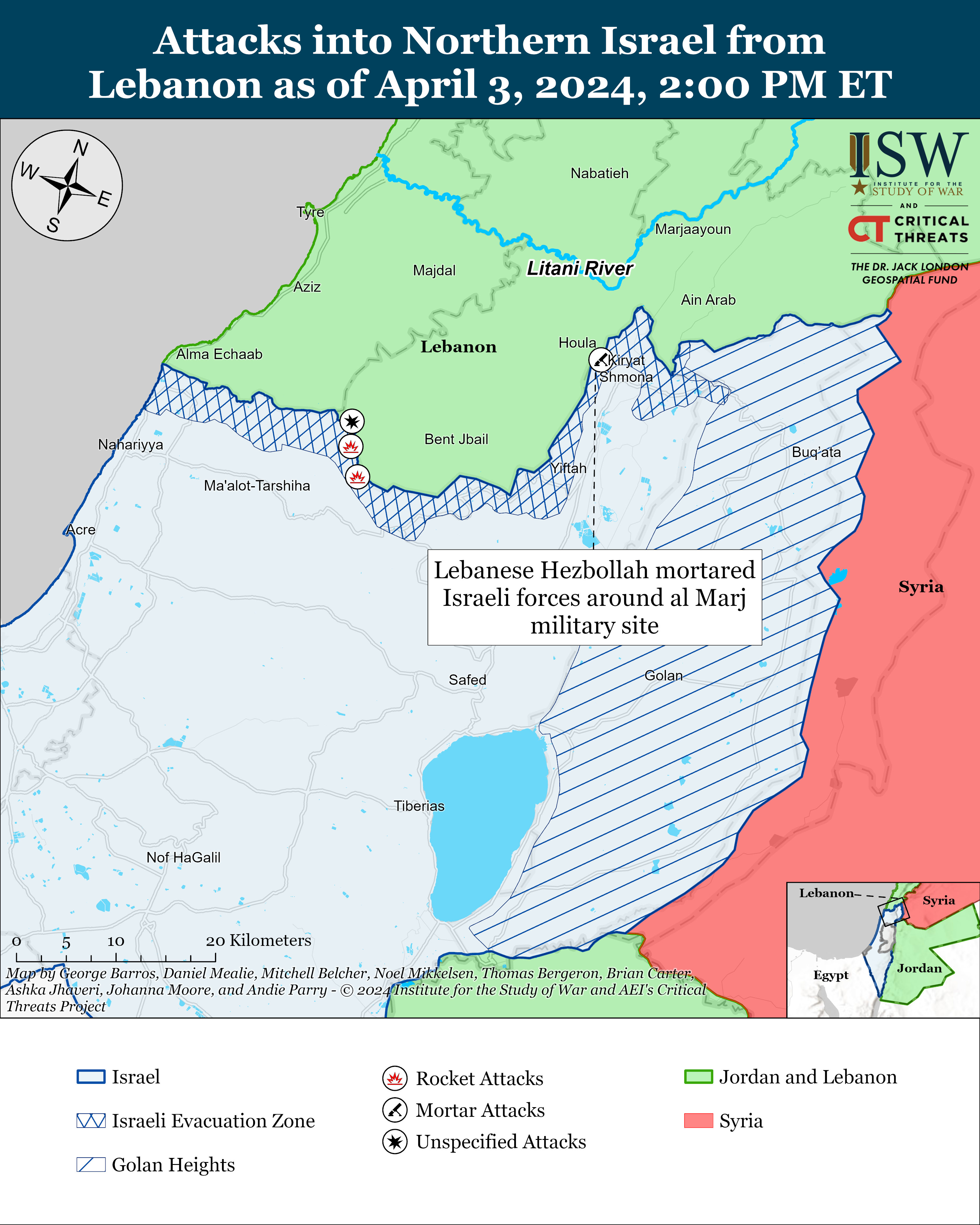 Lebanese Hezbollah has conducted at least four attacks from southern Lebanon into northern Israel since CTP-ISW’s last data cutoff on April 2.[48]