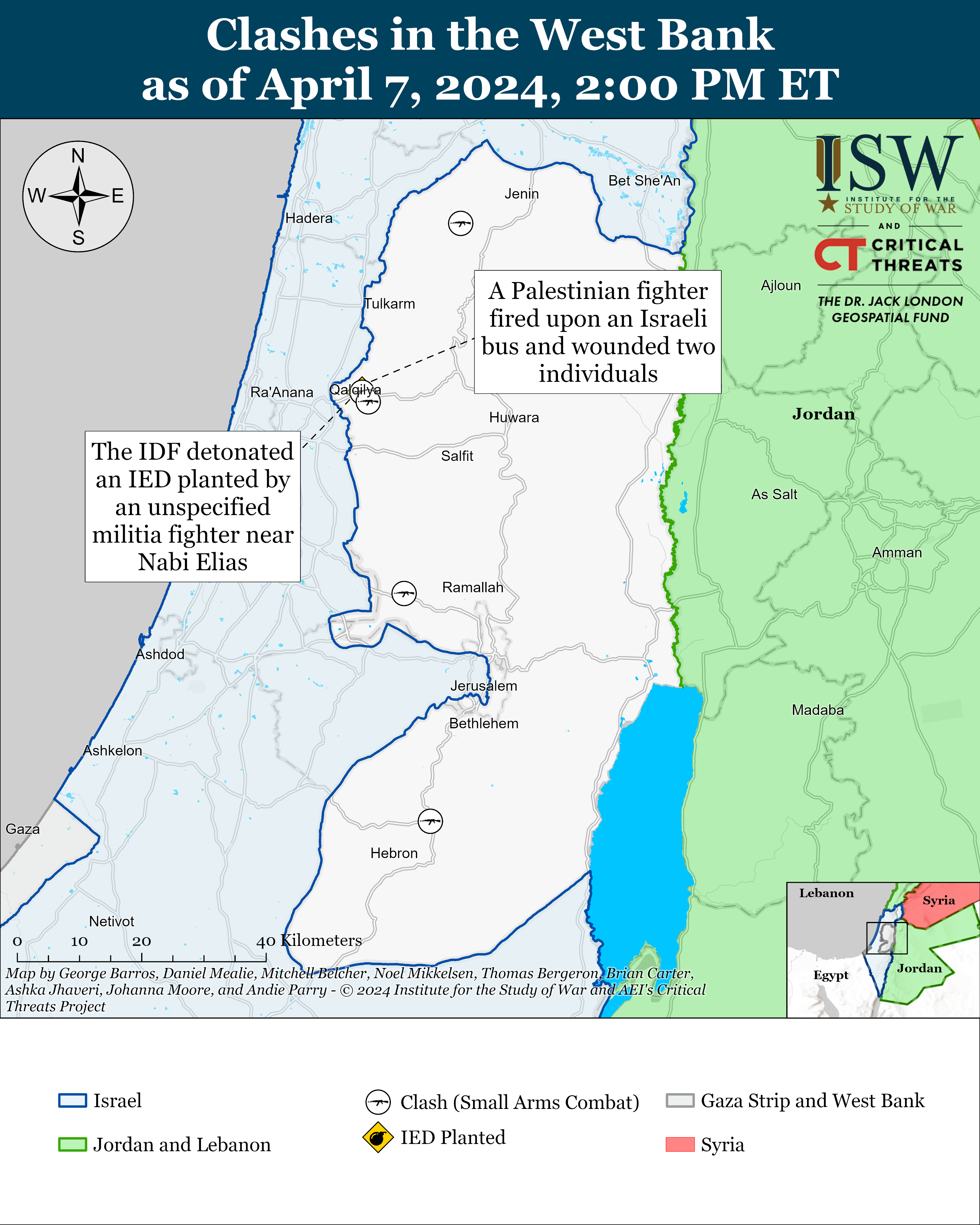 Israeli forces have engaged Palestinian fighters in at least four locations in the West Bank since CTP-ISW’s last data cut off on April 6.[23]