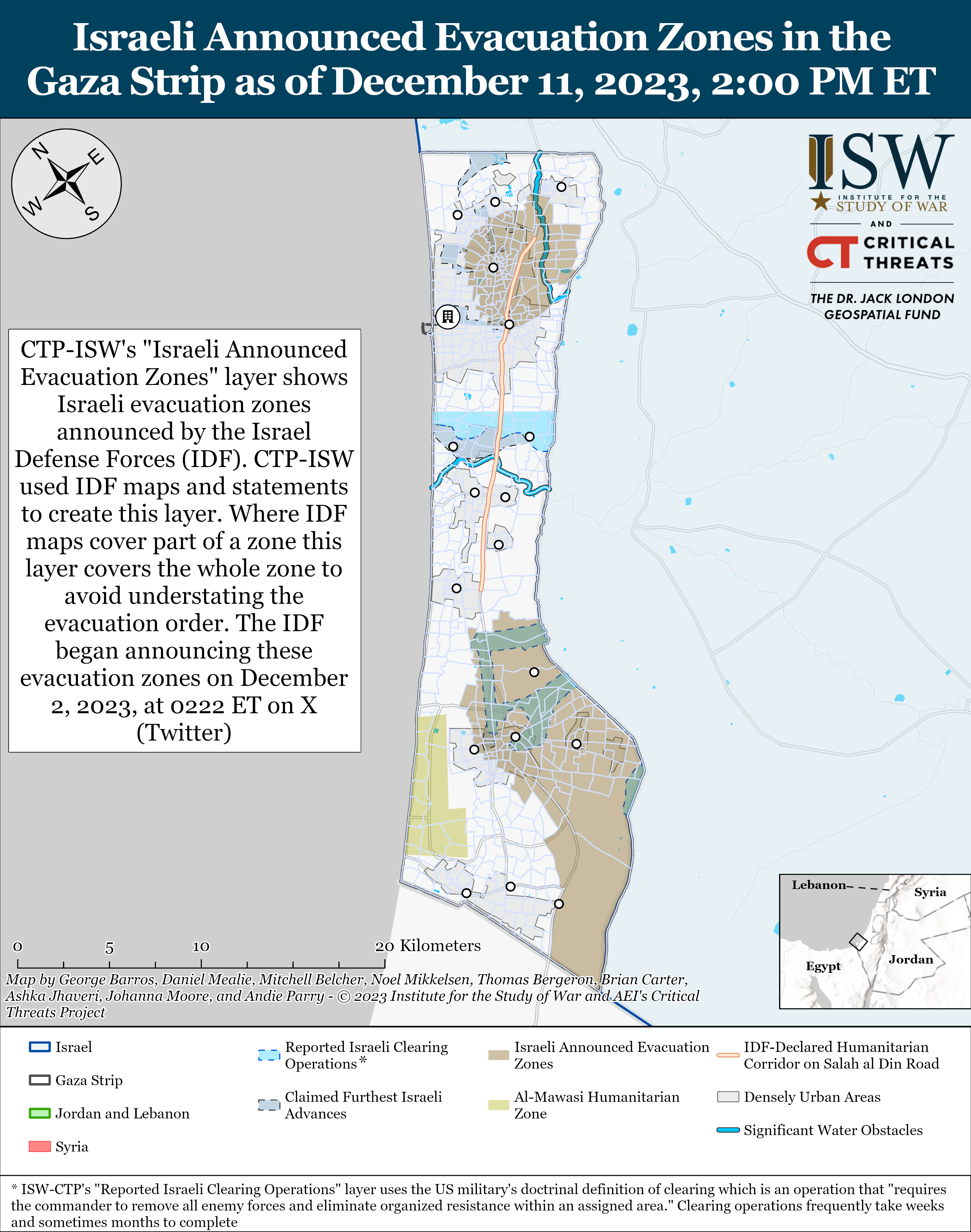 Note: CTP and ISW have refocused the update to cover the Israel-Hamas war. The new sections address developments in the Gaza Strip, the West Bank, Lebanon, and Syria, as well as noteworthy activity from Iran’s Axis of Resistance. We do not report in detail on war crimes because these activities are well-covered in Western media and do not directly affect the military operations we are assessing and forecasting. We utterly condemn violations of the laws of armed conflict and the Geneva Conventions and crimes against humanity even though we do not describe them in these reports.