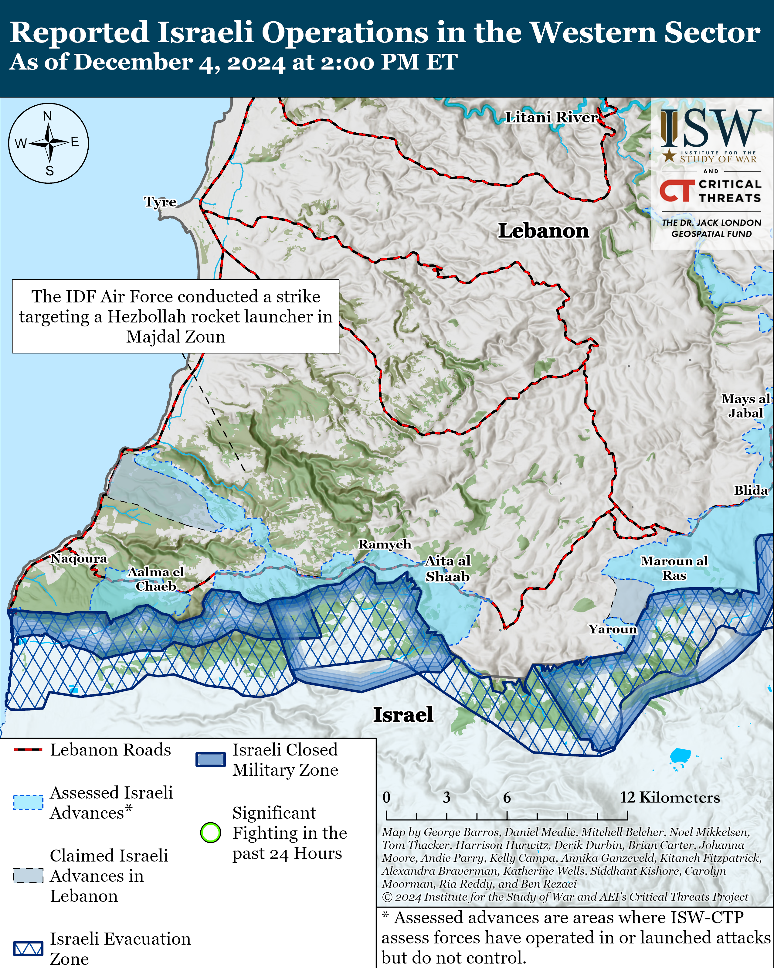 Hezbollah has not claimed any attacks into Israel since CTP-ISW’s last data cutoff on December 3.