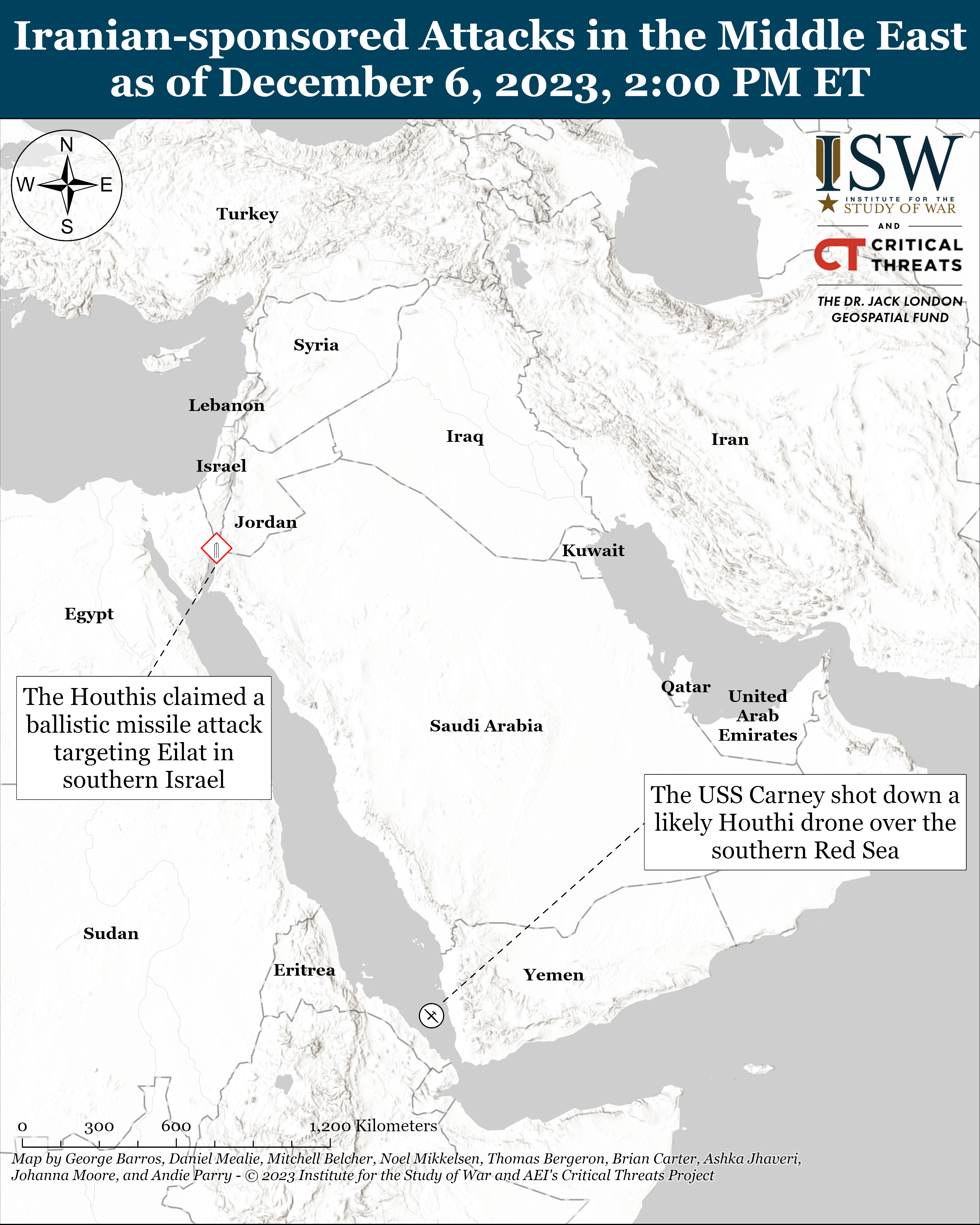 - The Houthi movement said that it launched several ballistic missiles targeting Eilat in southern Israel on December 6.