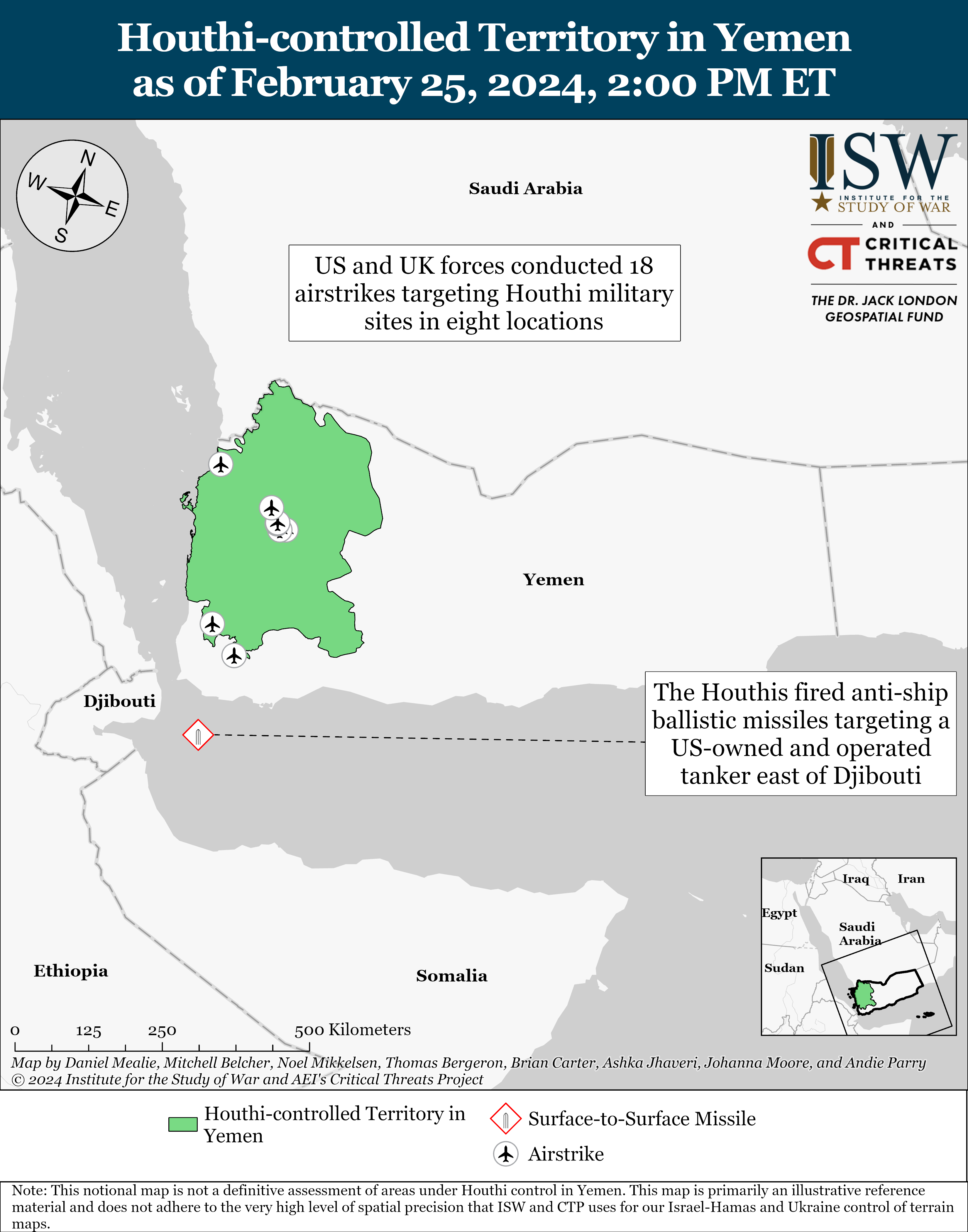 [25] https://twitter.com/CENTCOM/status/1761512889230479860 ; https://www.gov.uk/government/news/joint-statement-from-australia-bahrai… ; https://www.axios.com/2024/02/24/us-uk-military-houthi-strike-yemen-iran