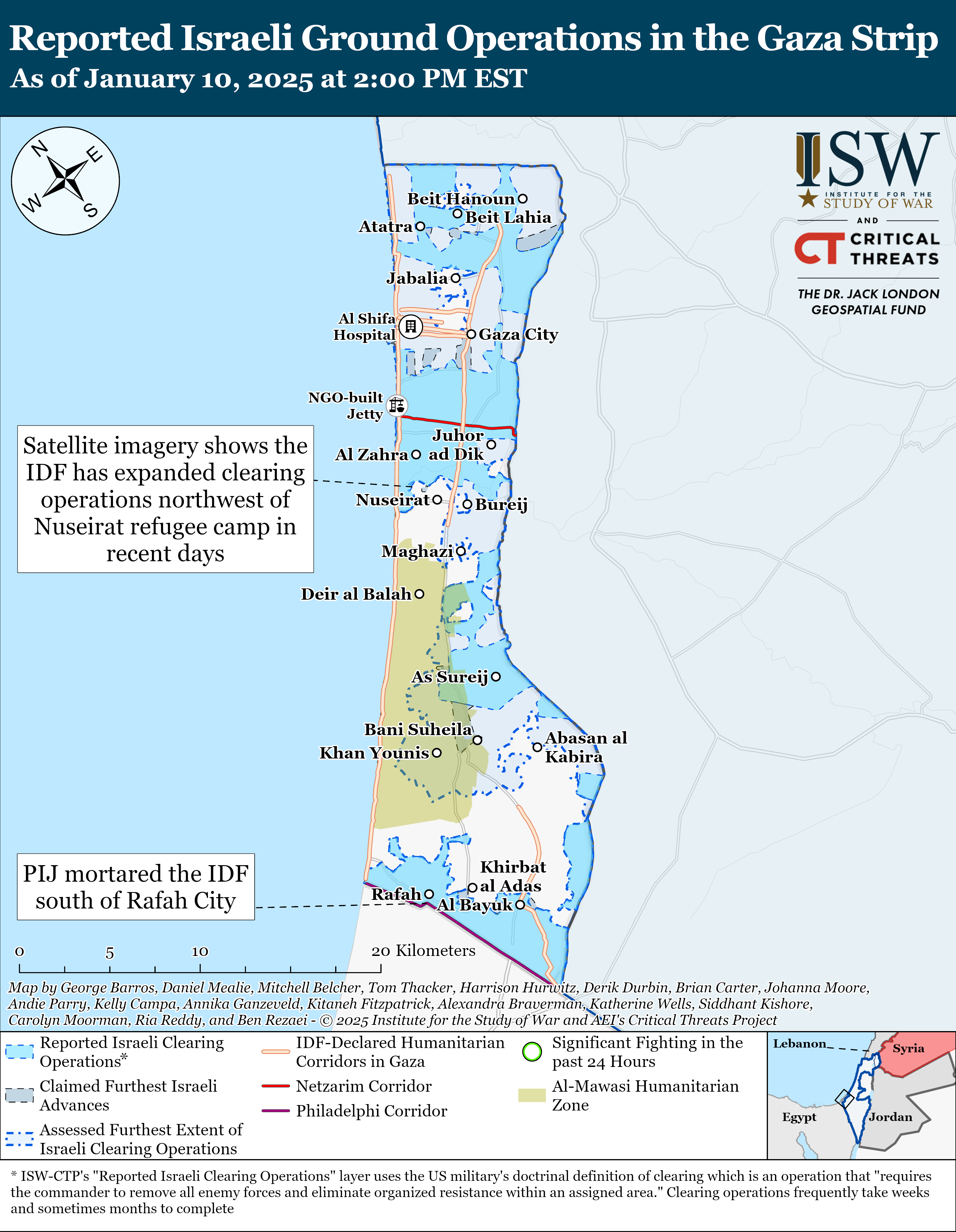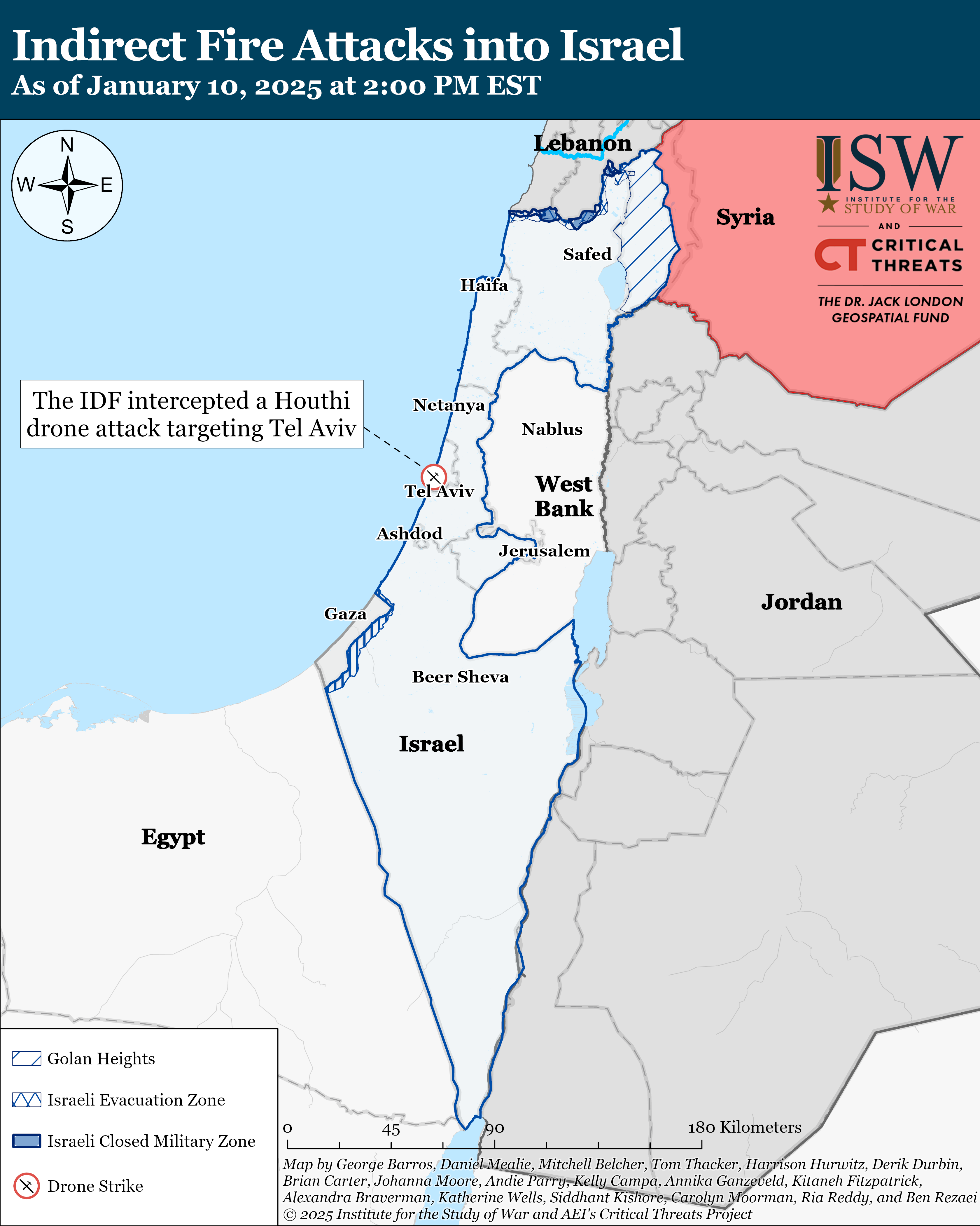 Israeli officials told Axios on January 9 that Israeli Prime Minister Benjamin Netanyahu and Defense Minister Israel Katz want to keep the IDF in three unspecified locations in southern Lebanon beyond the ceasefire’s required withdrawal date.[71] A US official told Axios that Lebanese President Joseph Aoun’s victory on January 9 will add more pressure from the United States and other Western and Arab countries on Israel to withdraw from Lebanon by the deadline, which is January 26.[72] This report follows senior Israeli officials indicating on January 5 that the IDF will likely extend its deployment in southern Lebanon if the Israel-Lebanon ceasefire agreements are not implemented fully by the time that the IDF must withdraw.[73]