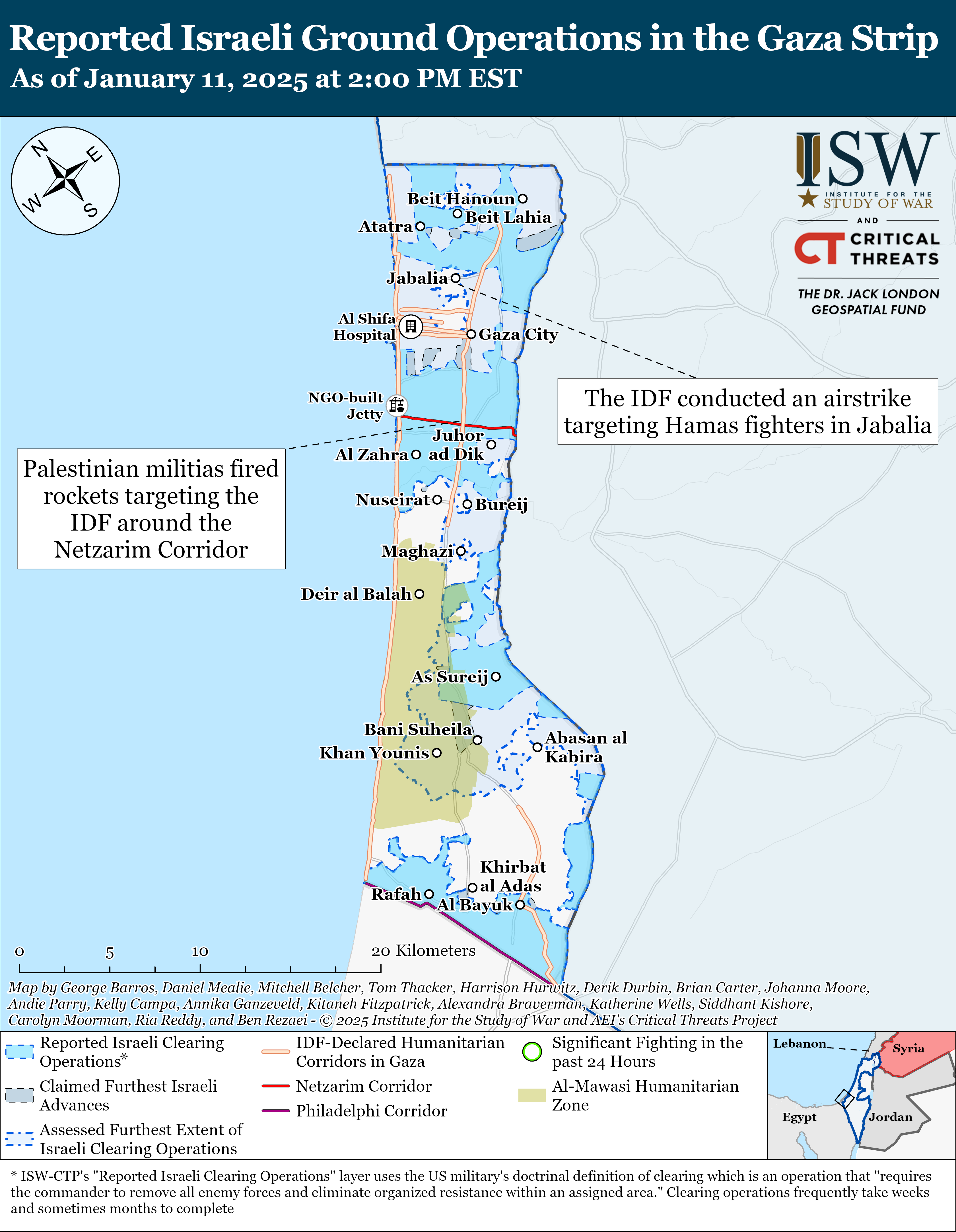 The LAF continued to deploy to towns in Tyre district in southwestern Lebanon on January 11.[45] The LAF reported that LAF forces were deploying to Naqoura, Ain al Zarqa, al Batishiyeh, Dhayra, Aalma el Chaeb, Tayr Harfa, and Majdal Zoun. The LAF announced on January 7 that the LAF began deploying to Naqoura, Aalma el Chaeb, and Tayr Harfa after the IDF withdrew from these villages.[46] The IDF last reportedly operated in these areas on January 6.[47]