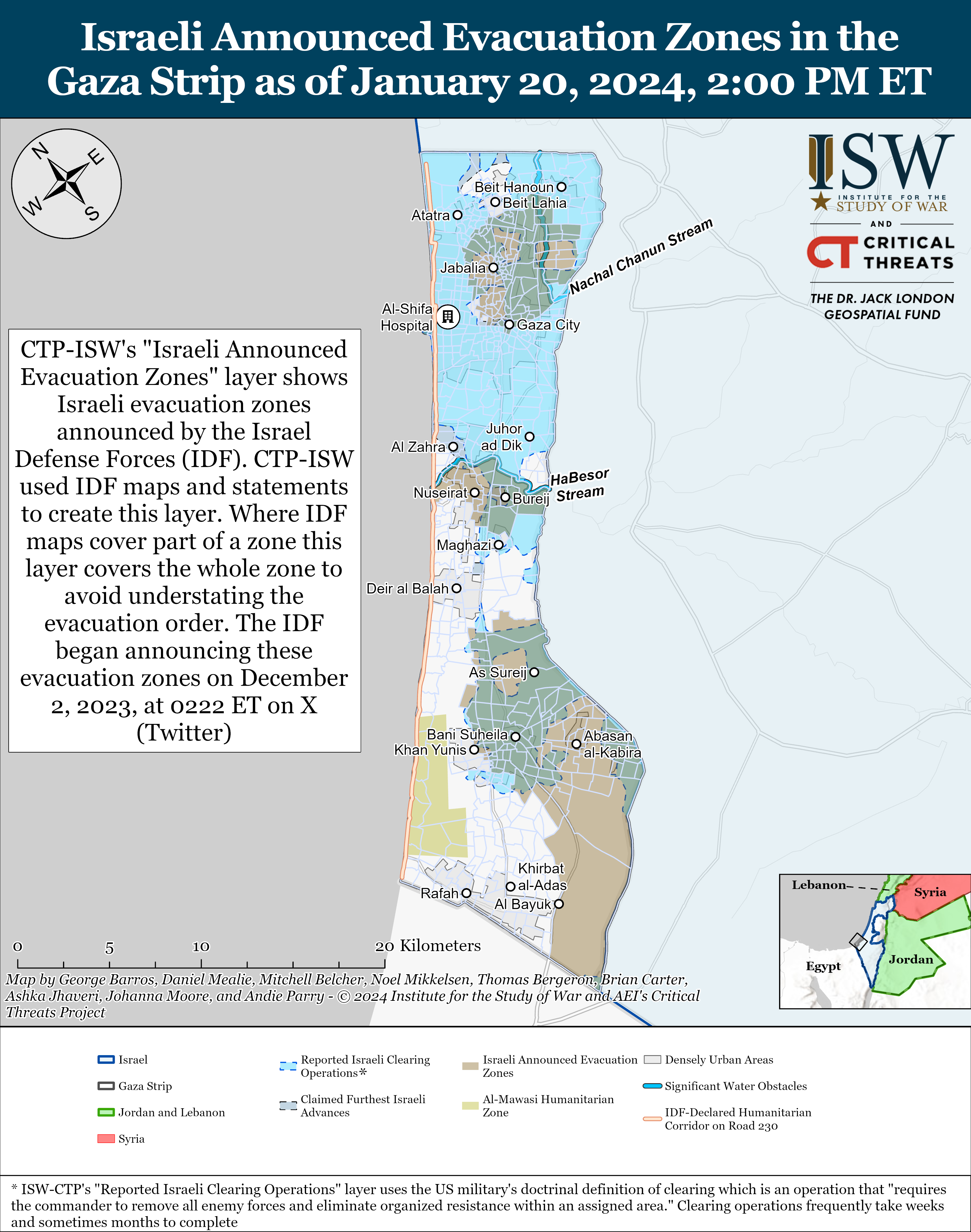 CTP-ISW will publish abbreviated updates on January 20 and 21, 2024. Detailed coverage will resume on Monday, January 22, 2024.