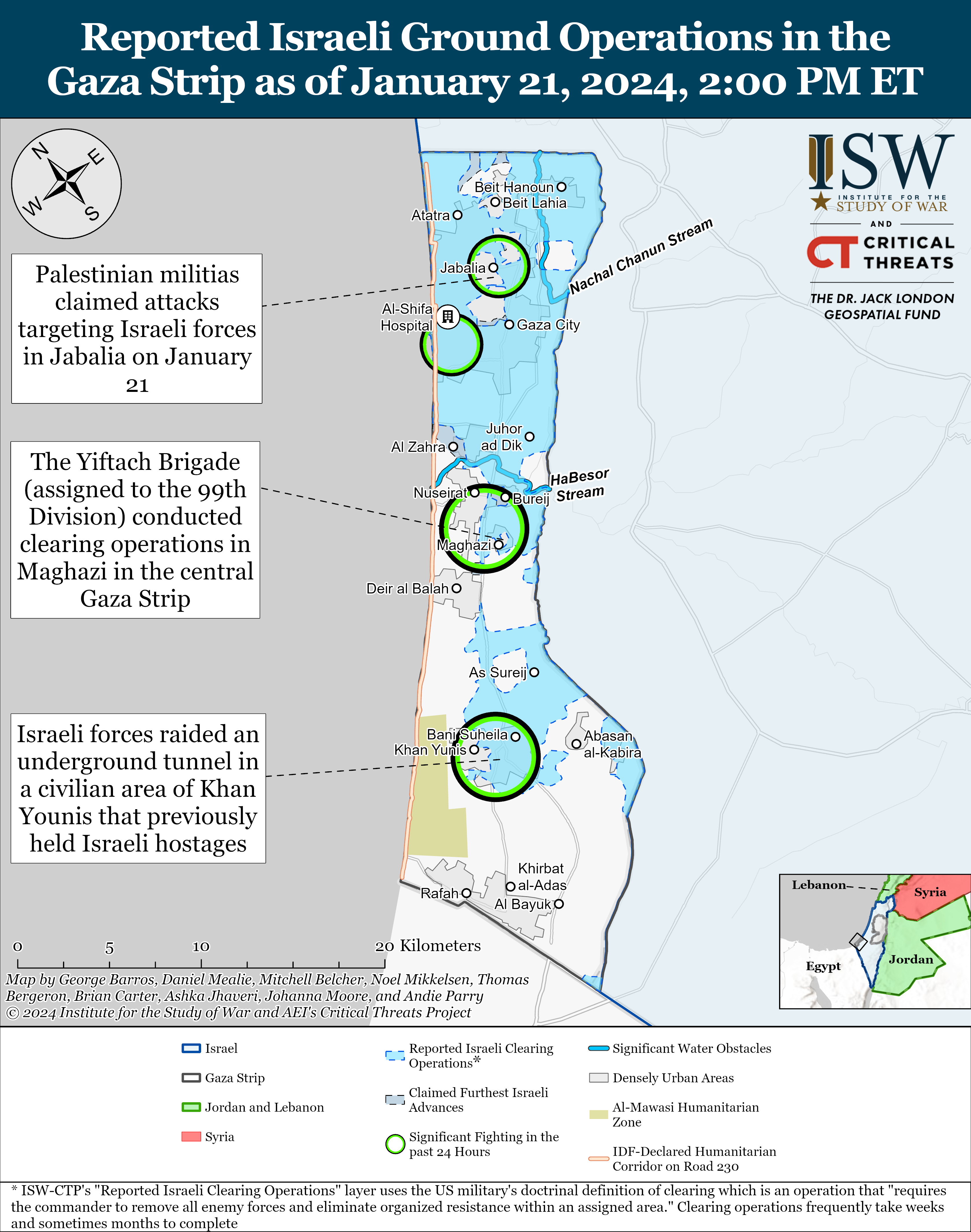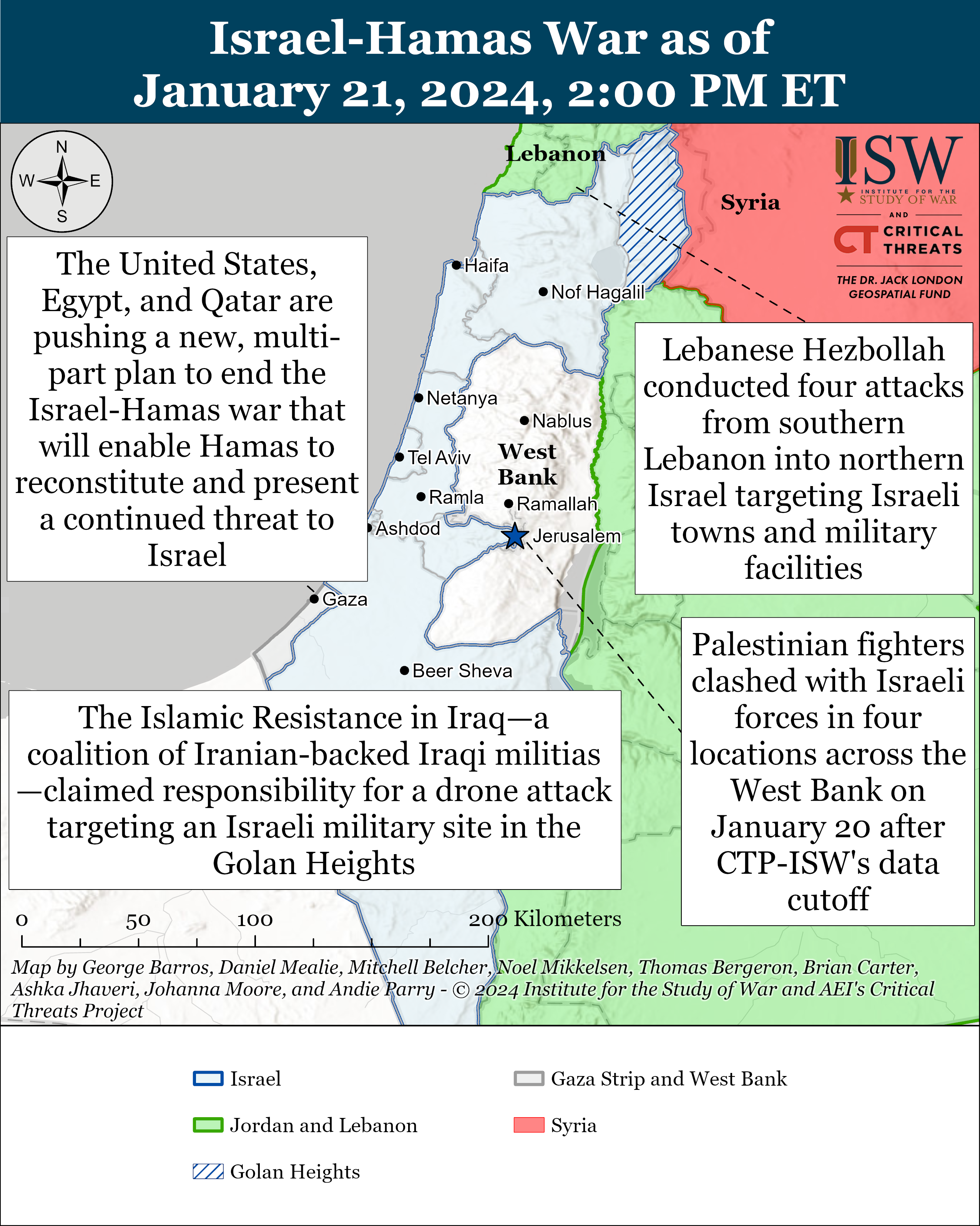 CTP-ISW published abbreviated updates on January 20 and 21, 2024. Detailed coverage will resume Monday, January 22, 2024.