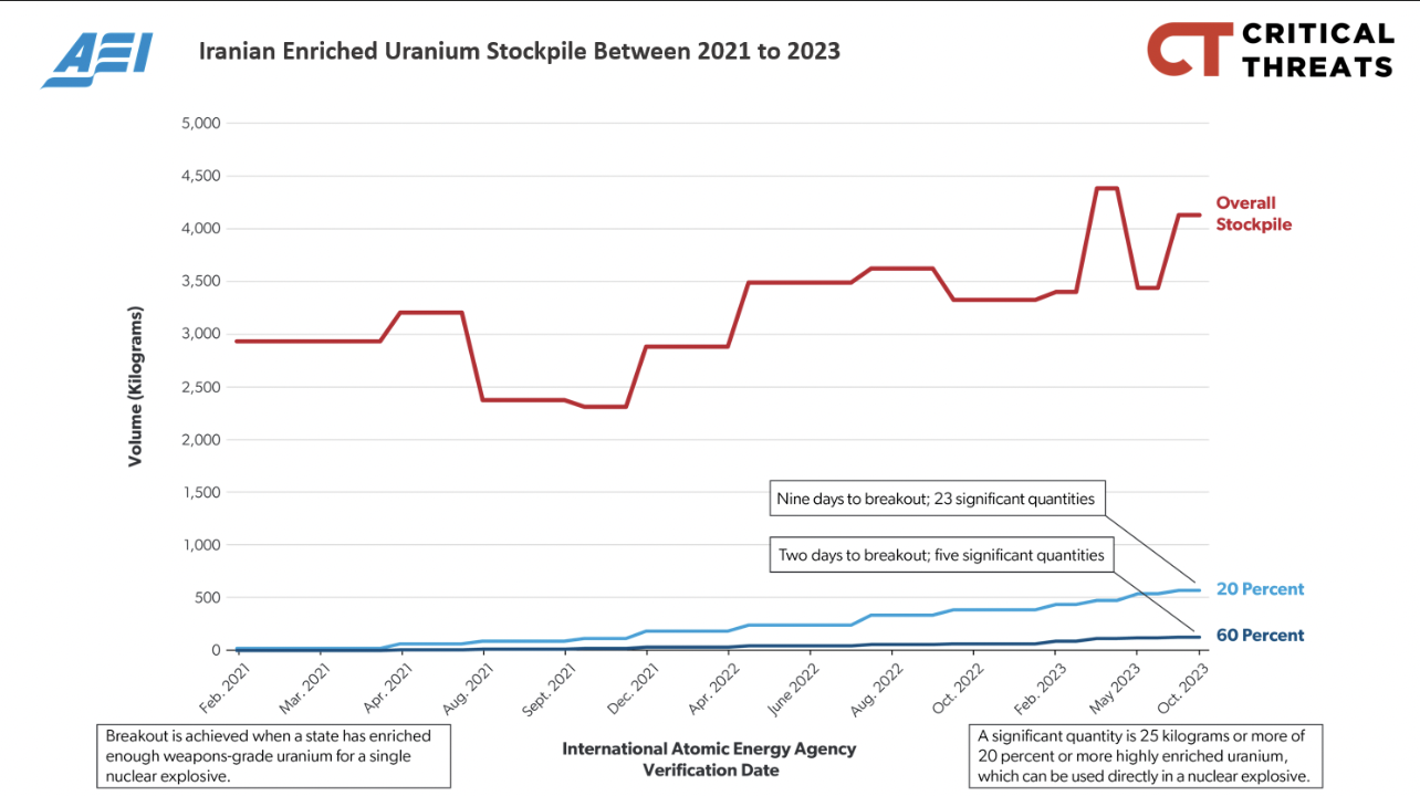 Note: The above graph reflects the estimates reported by the International Atomic Energy Agency in its November 2023 verification and monitoring report.