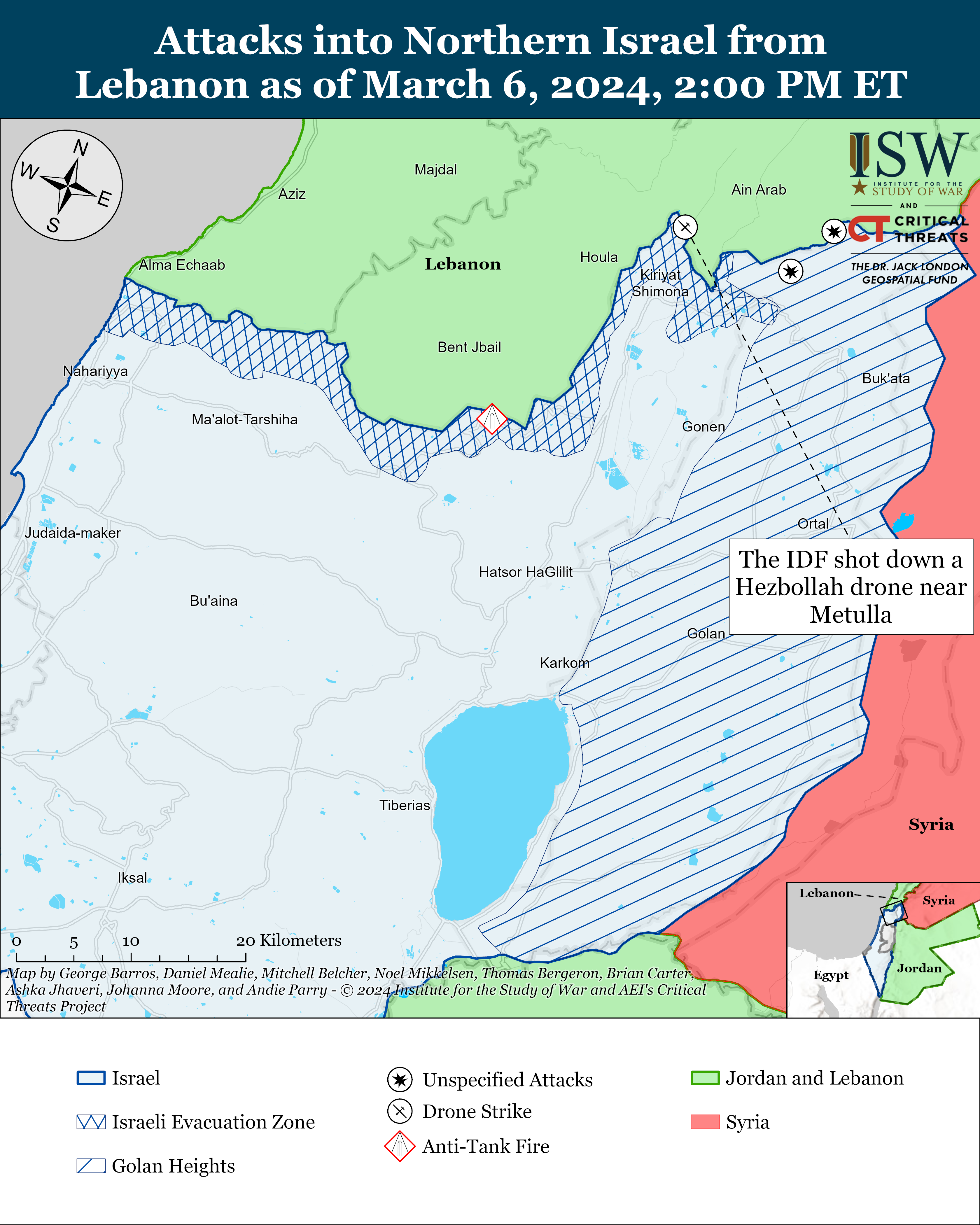 Lebanese Hezbollah has conducted at least four attacks from southern Lebanon into northern Israel since CTP-ISW’s last data cutoff on March 5.[35]