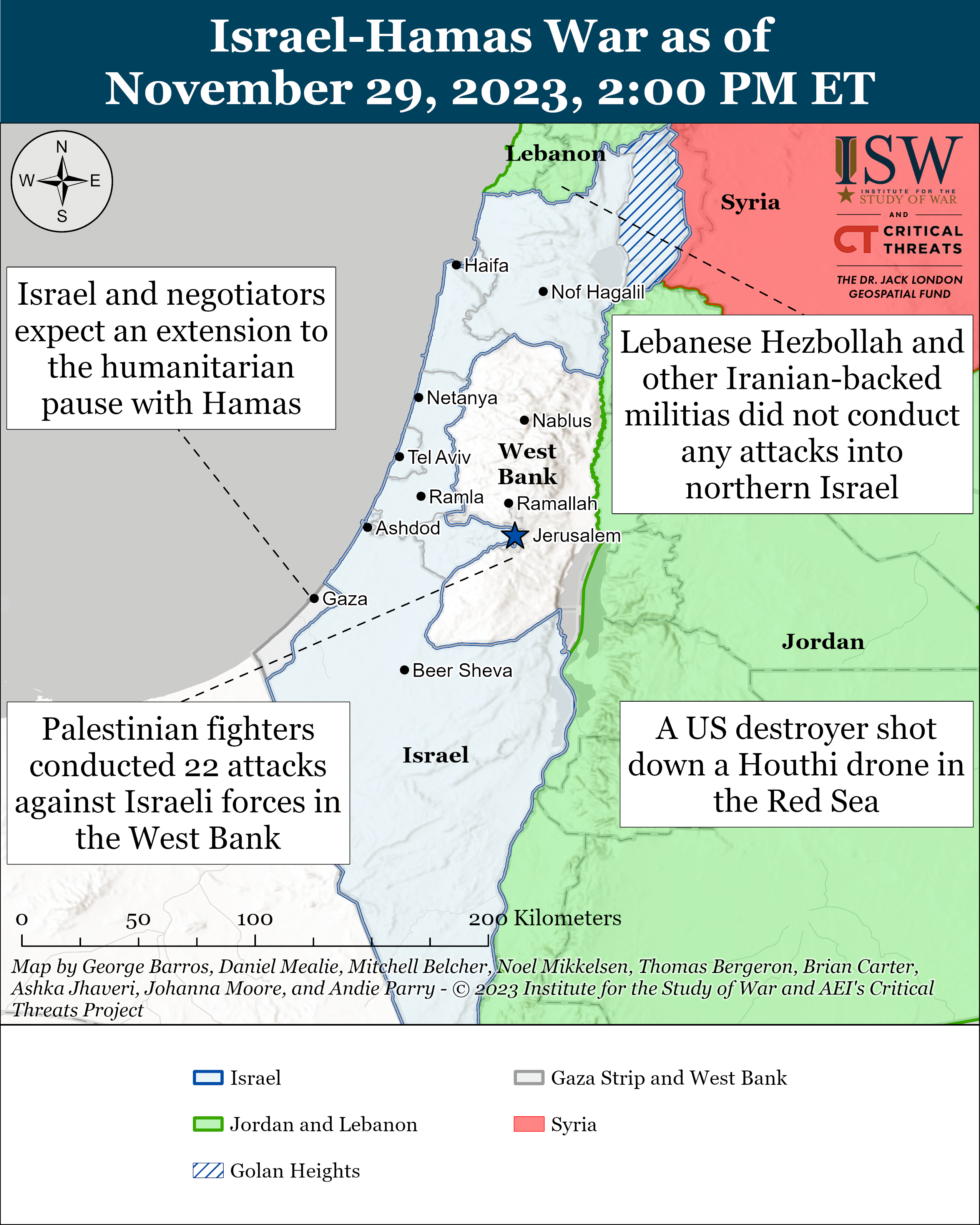 - Lebanese Hezbollah and other Iranian-backed militias did not conduct any attacks into northern Israel on November 29.