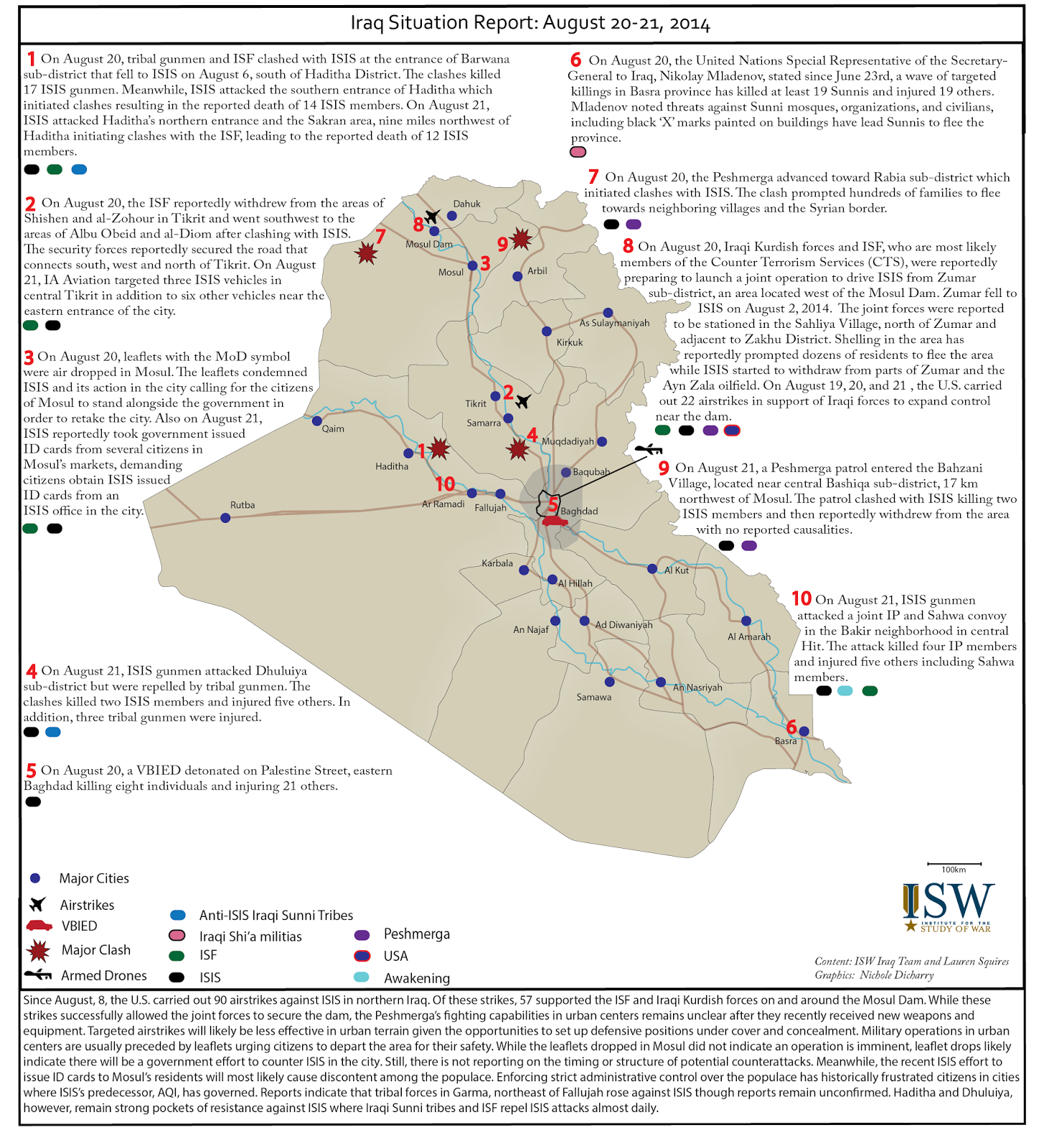 Previous Next Iraq Situation Report: August 20-21, 2014 by ISW Iraq Team, Lauren Squires, and Nichole Dicharry Previous Next