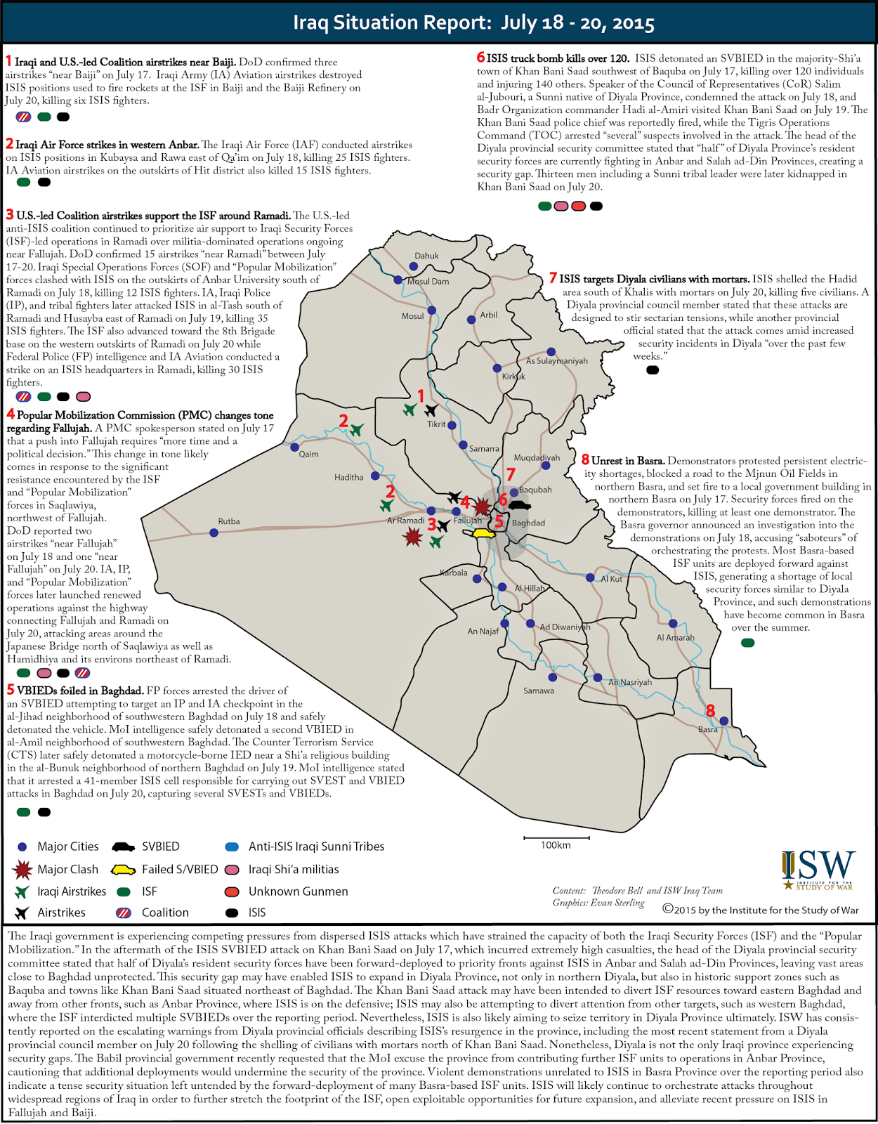 Previous Next Iraq Situation Report: July 18 – 20, 2015 By: Theodore Bell and ISW Iraq Team Previous Next