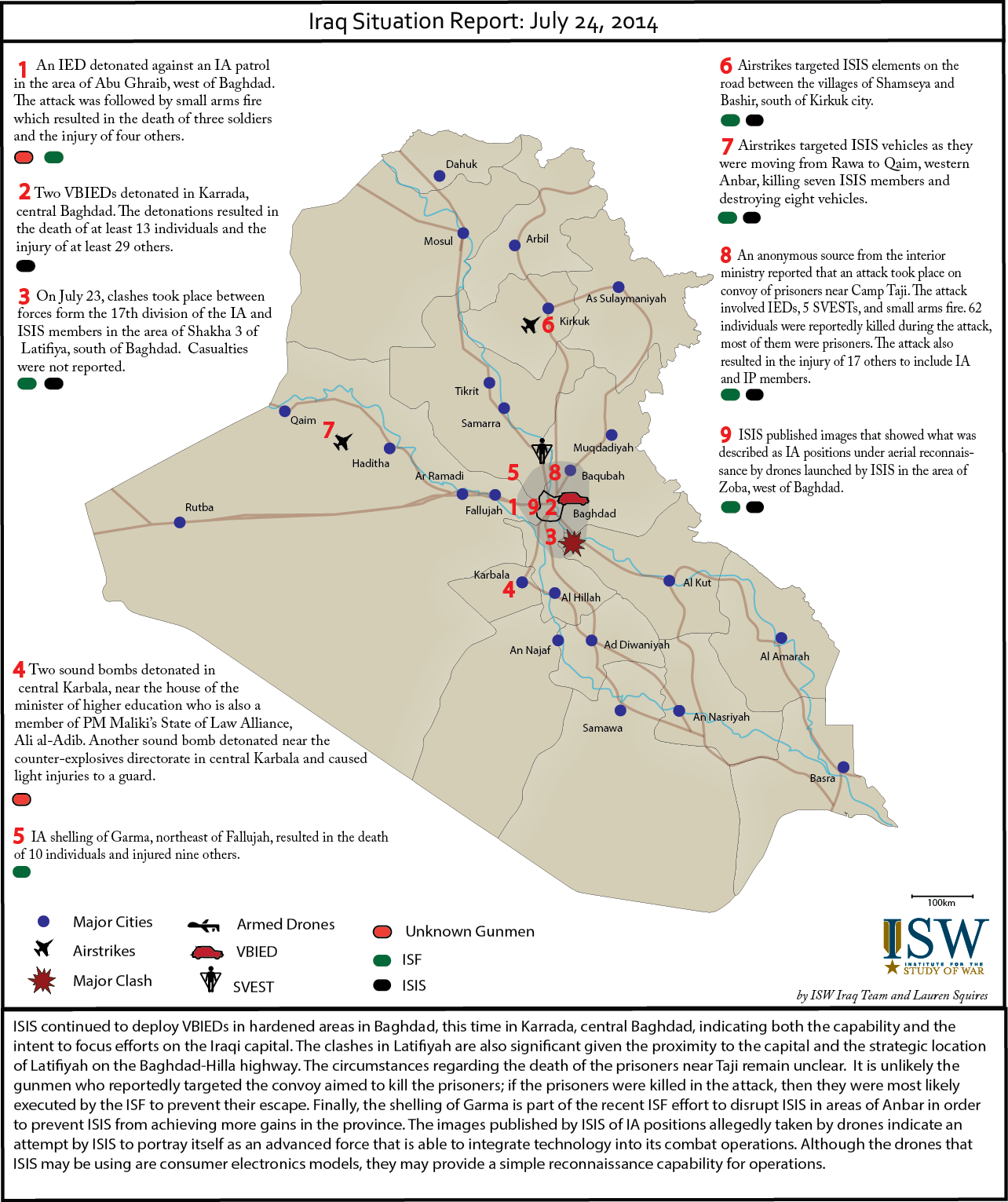 Previous Next Iraq Situation Report: July 24, 2014 by Ahmed Ali, ISW Iraq Team, and Lauren Squires Ahmed Ali is the Iraq Team Lead and senior Iraq analyst at the Institute for the Study of War. Previous Next