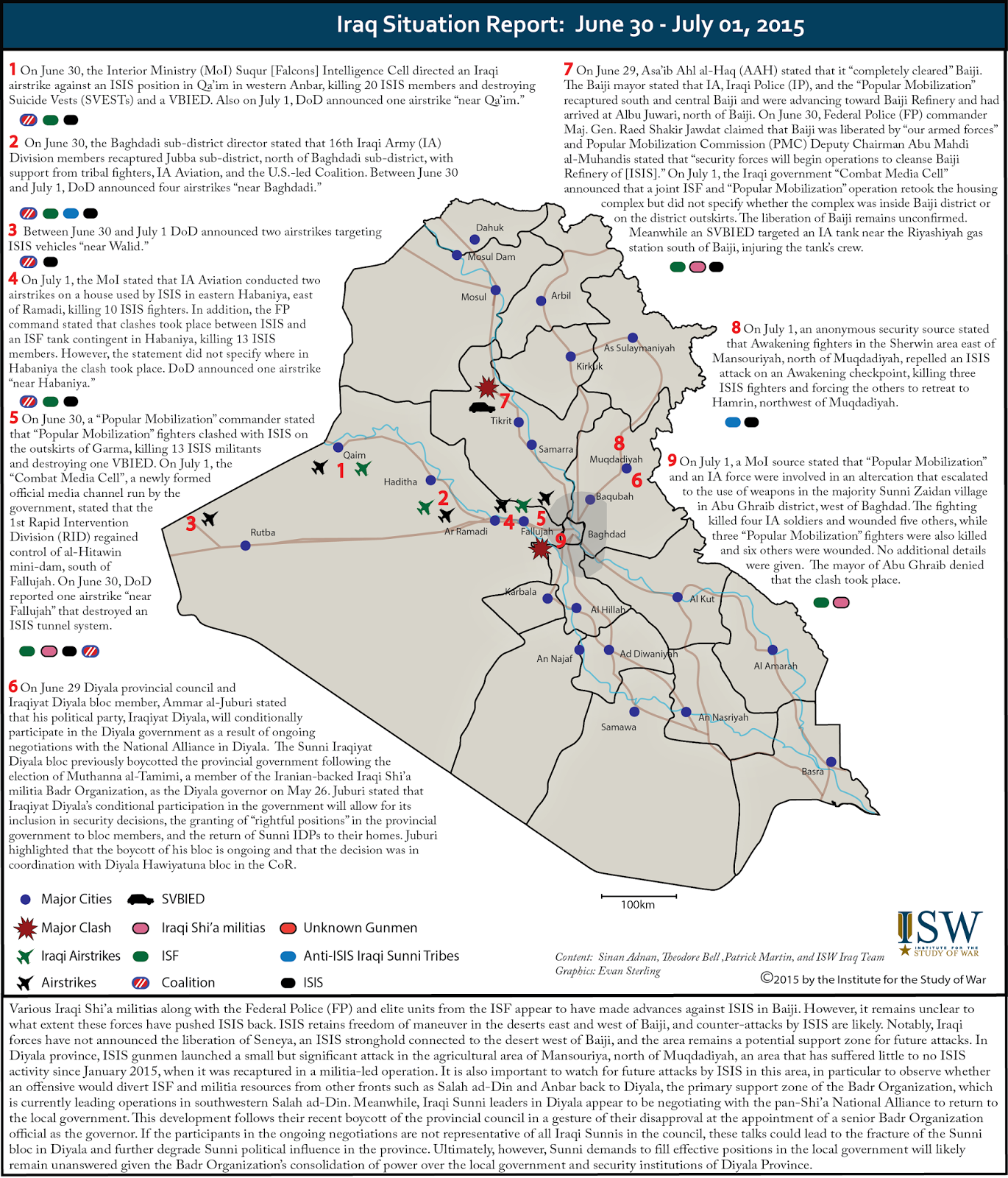 Previous Next Iraq Situation Report: June 30 – July 01, 2015 Sinan Adnan, Theodore Bell, Patrick Martin, and ISW Iraq Team Previous Next