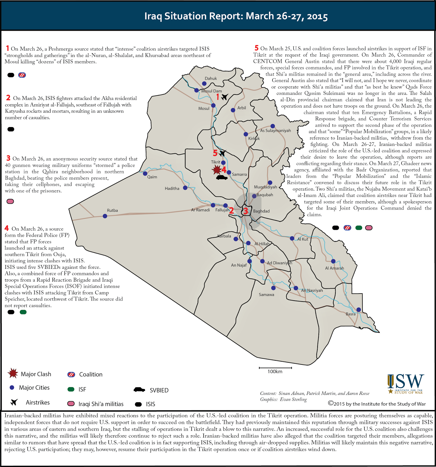 Previous Next Iraq Situation Report: March 26-27, 2015 by: Sinan Adnan, Patrick Martin, and Aaron Reese Previous Next