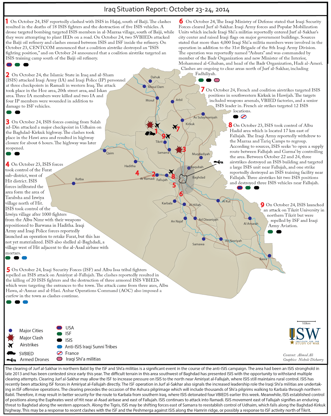 Previous Next Iraq Situation Report: October 23-24, 2014 by Ahmed Ali and Nichole Dicharry Ahmed Ali is a Senior Iraq Research Analyst and the Iraq Team Lead. Previous Next