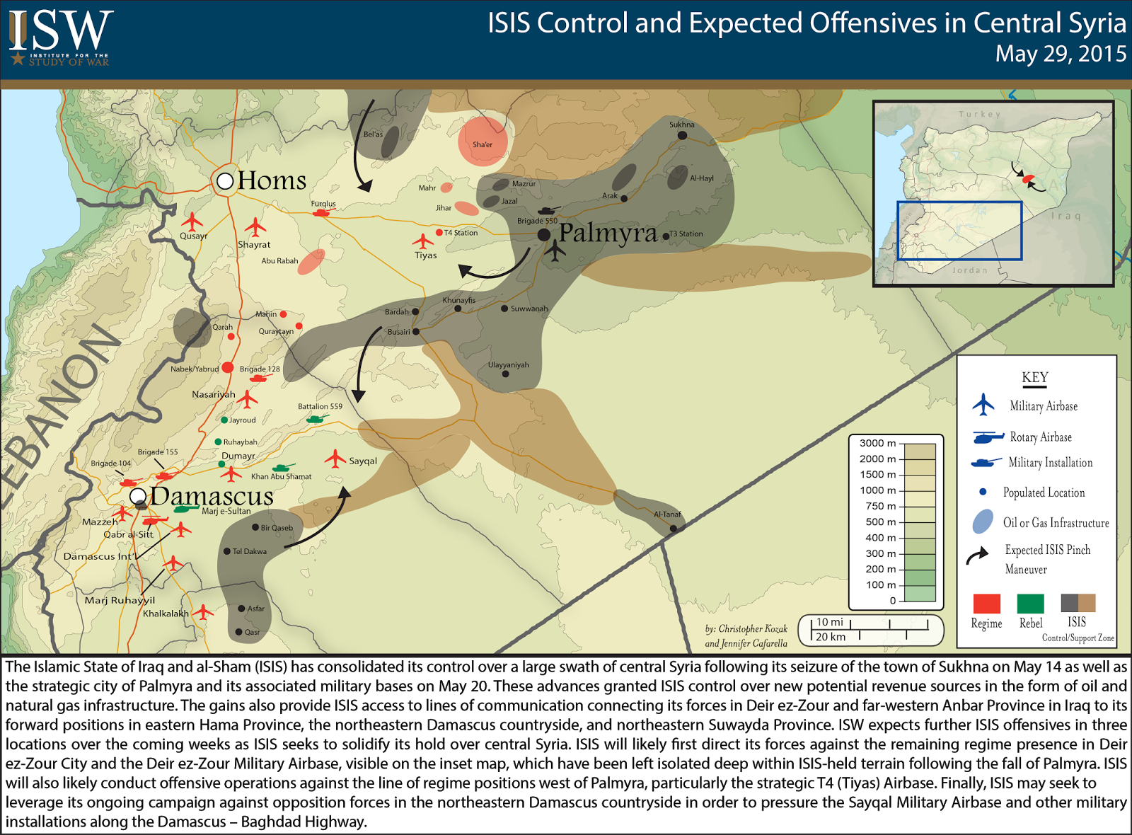 Previous Next ISIS Control and Expected Offensives in Central Syria: May 29, 2015 by: Christopher Kozak and Jennifer Cafarella Previous Next