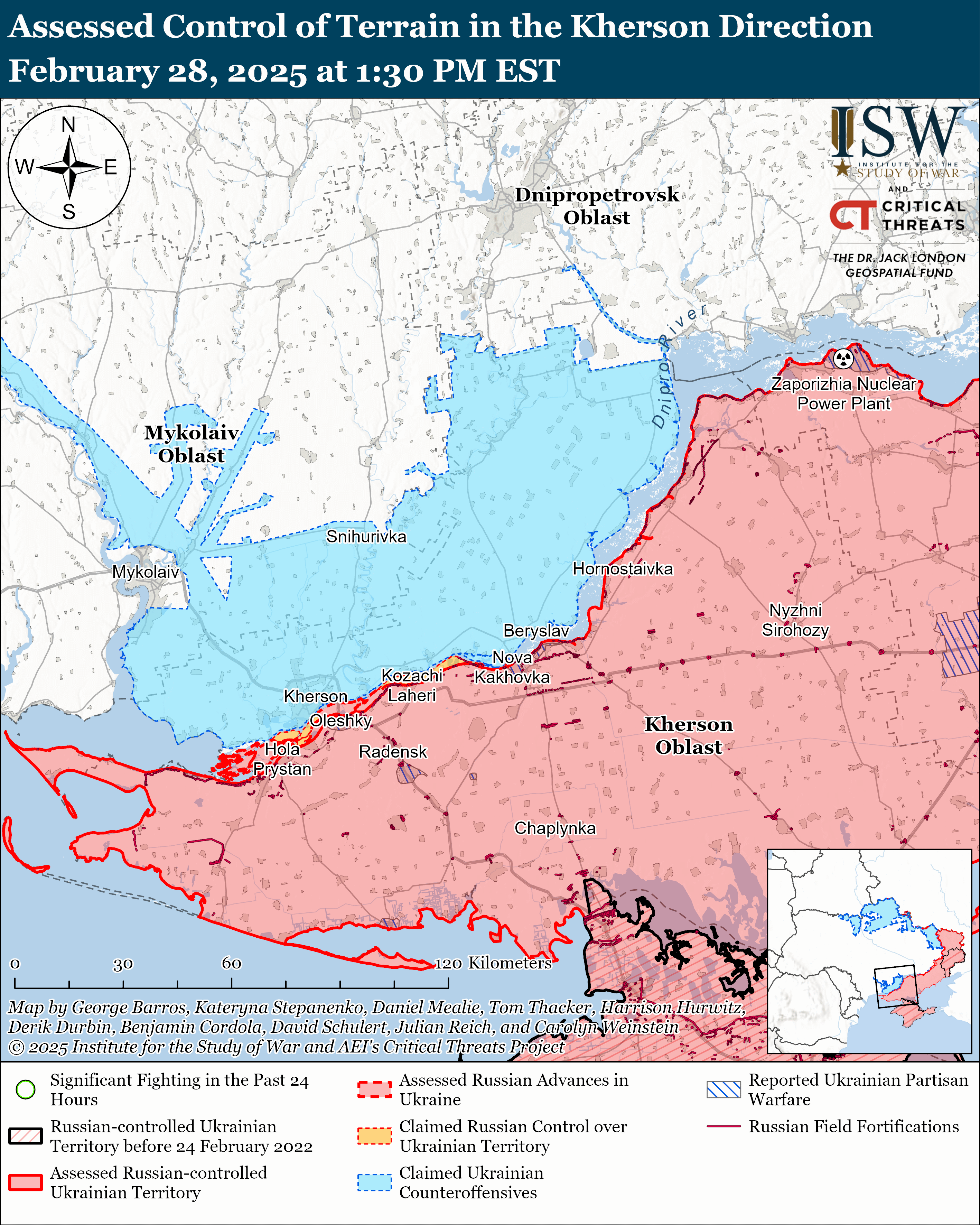 Note: ISW does not receive any classified material from any source, uses only publicly available information, and draws extensively on Russian, Ukrainian, and Western reporting and social media as well as commercially available satellite imagery and other geospatial data as the basis for these reports. References to all sources used are provided in the endnotes of each update.