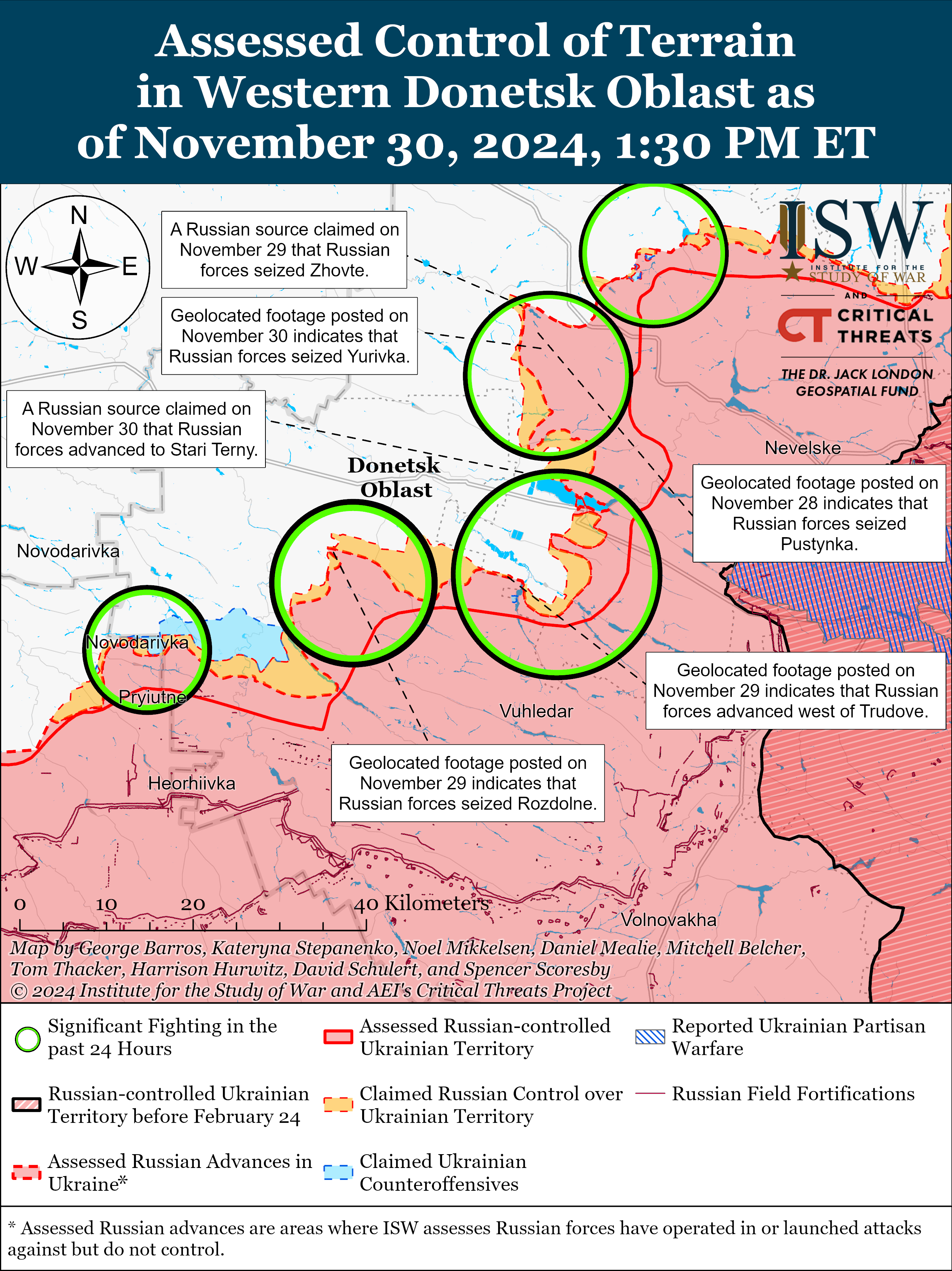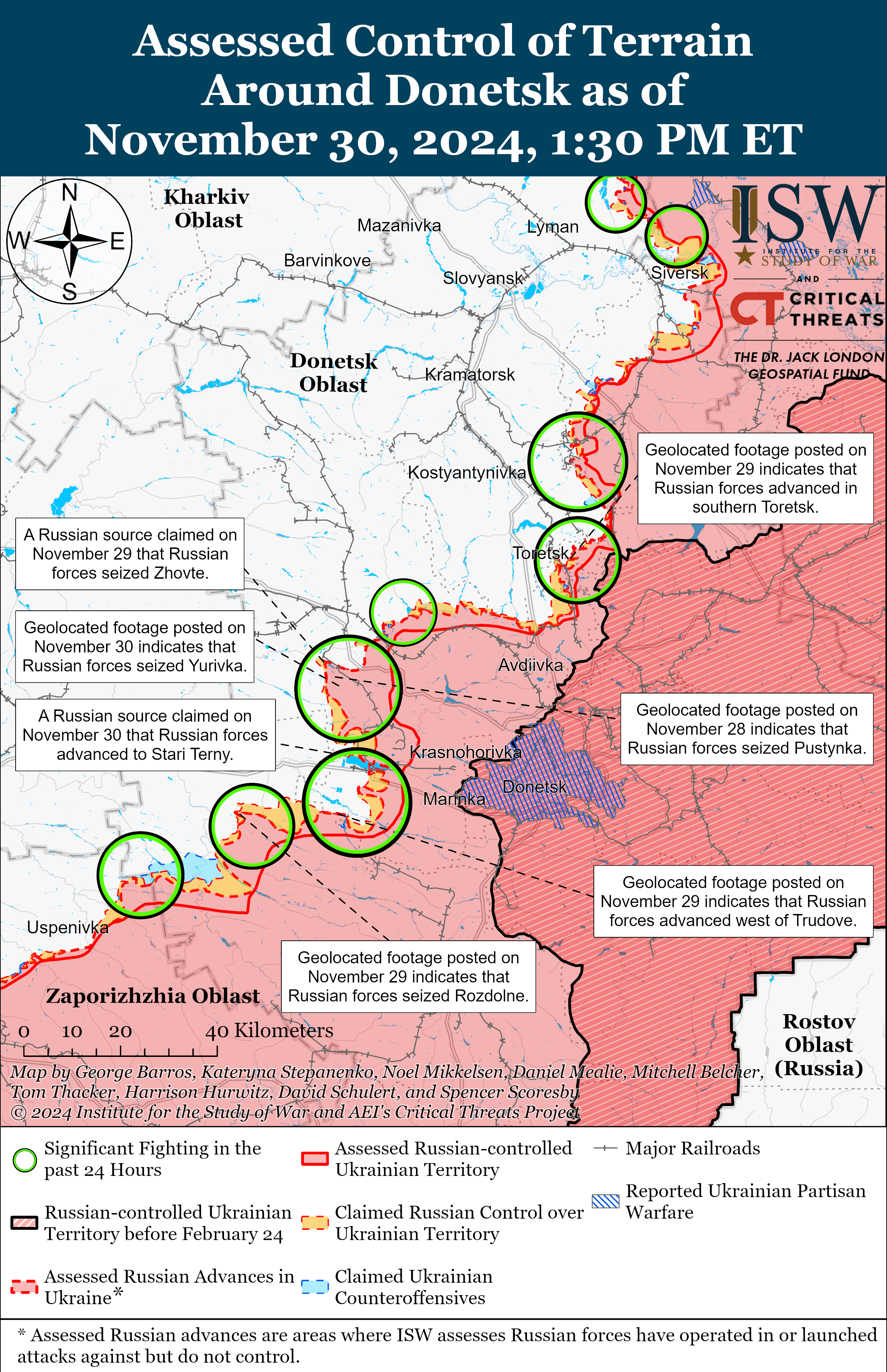 Note: The data cut-off for this product was 11:30am ET on November 30. ISW will cover subsequent reports in the December 1 Russian Offensive Campaign Assessment.