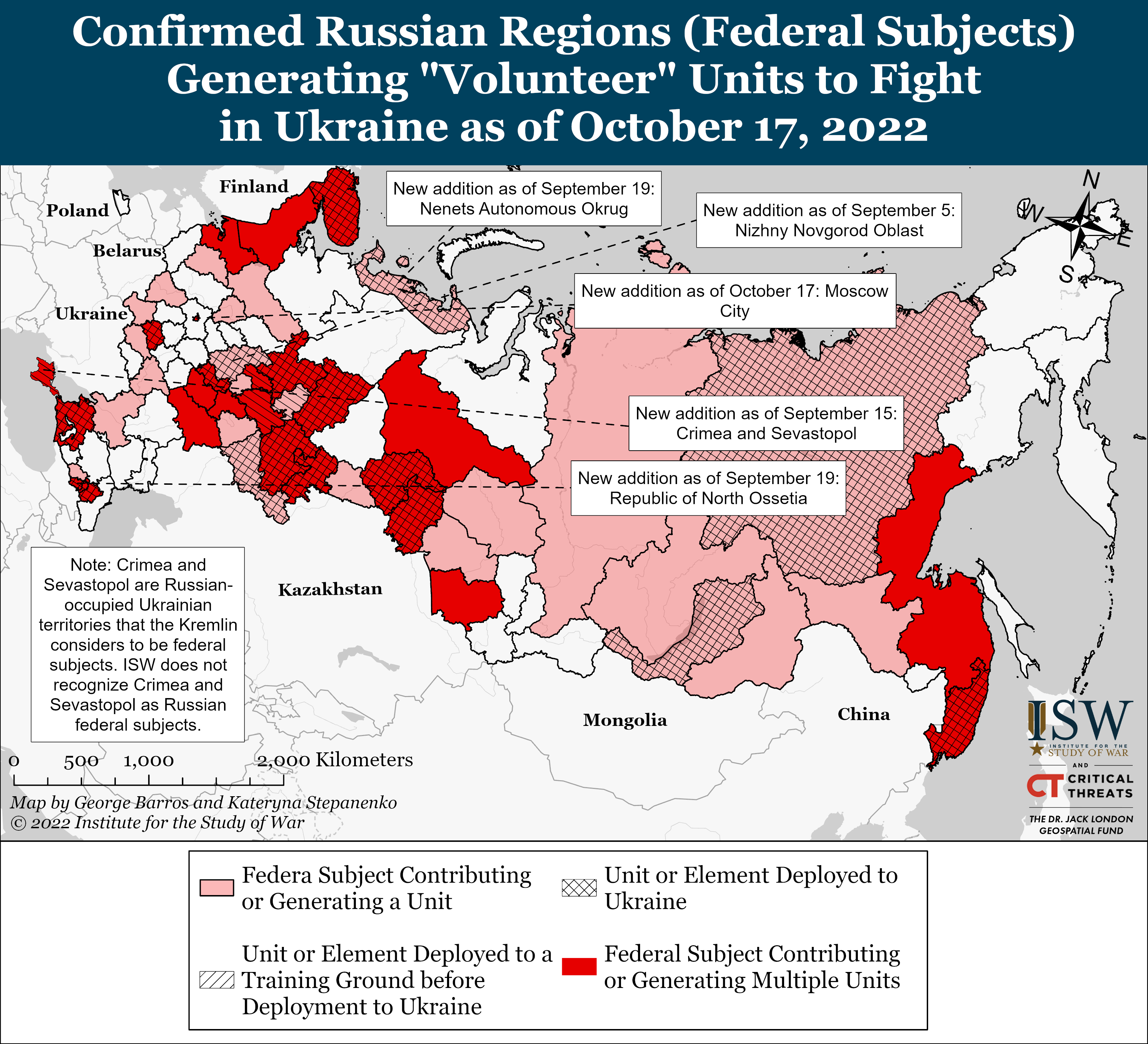 Moscow City officials announced the completion of partial mobilization in the city on October 17, likely in an effort to subdue criticism among Moscow residents amid reports of illegal mobilization in the city. Moscow Mayor Sergey Sobyanin announced that all mobilization centers closed on the afternoon of October 17, that all unprocessed summonses are no longer valid, and that men subject to unprocessed summonses are not required to undergo mobilization procedures.[60] Moscow officials are likely responding to the criticism from city residents who had complained about Moscow enlistment officers reportedly mobilizing men off the streets, apartments, and dormitories over the weekend.[61] The Russian government FAQ website also states that only Russian President Vladimir Putin may announce the end of the mobilization cycle, suggesting that Sobyanin’s statement has no legal force.[62]