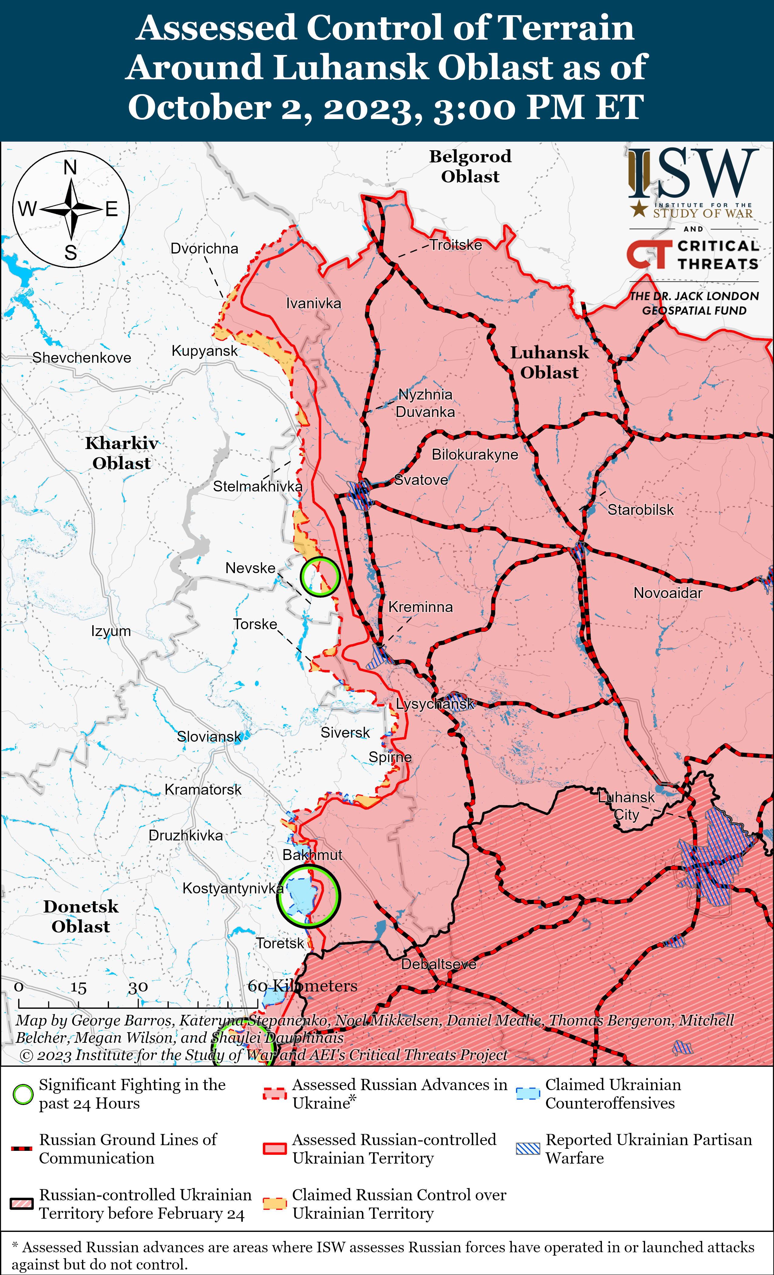 - Russian forces conducted offensive operations near Kreminna, near Bakhmut, along the Avdiivka-Donetsk City line, in the western Donetsk-eastern Zaporizhia Oblast border area, and in western Zaporizhia Oblast and reportedly advanced in some areas on October 2.