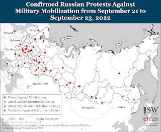 - Russian partial mobilization efforts are suffering from serious and systemic problems in their first days, generating popular resentment and setting conditions to produce a mobilized reserve force incapable of accomplishing the tasks Russian President Vladimir Putin has set for it.