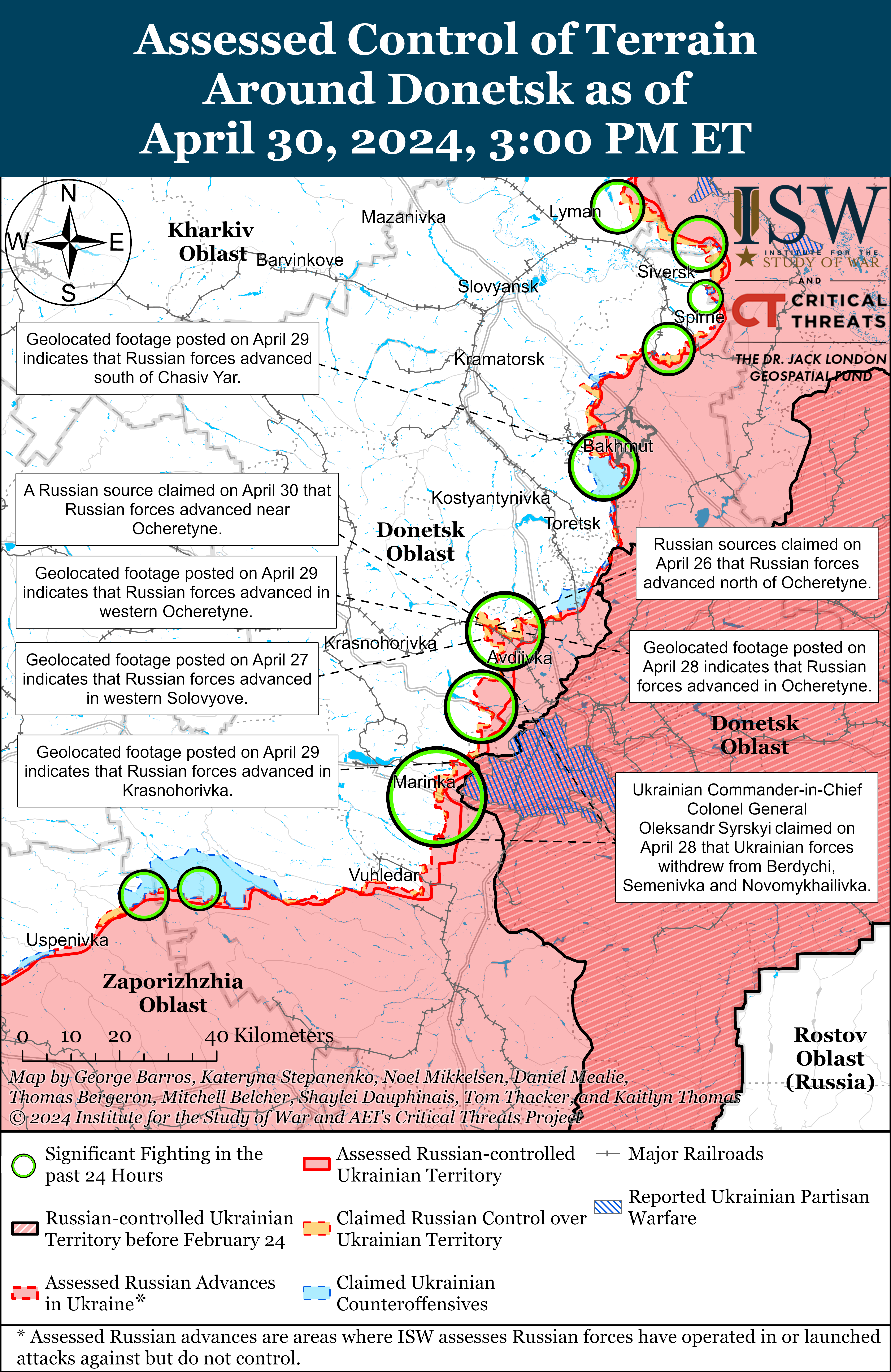 Note: The data cut-off for this product was 12:30pm ET on April 30. ISW will cover subsequent reports in the May 1 Russian Offensive Campaign Assessment.