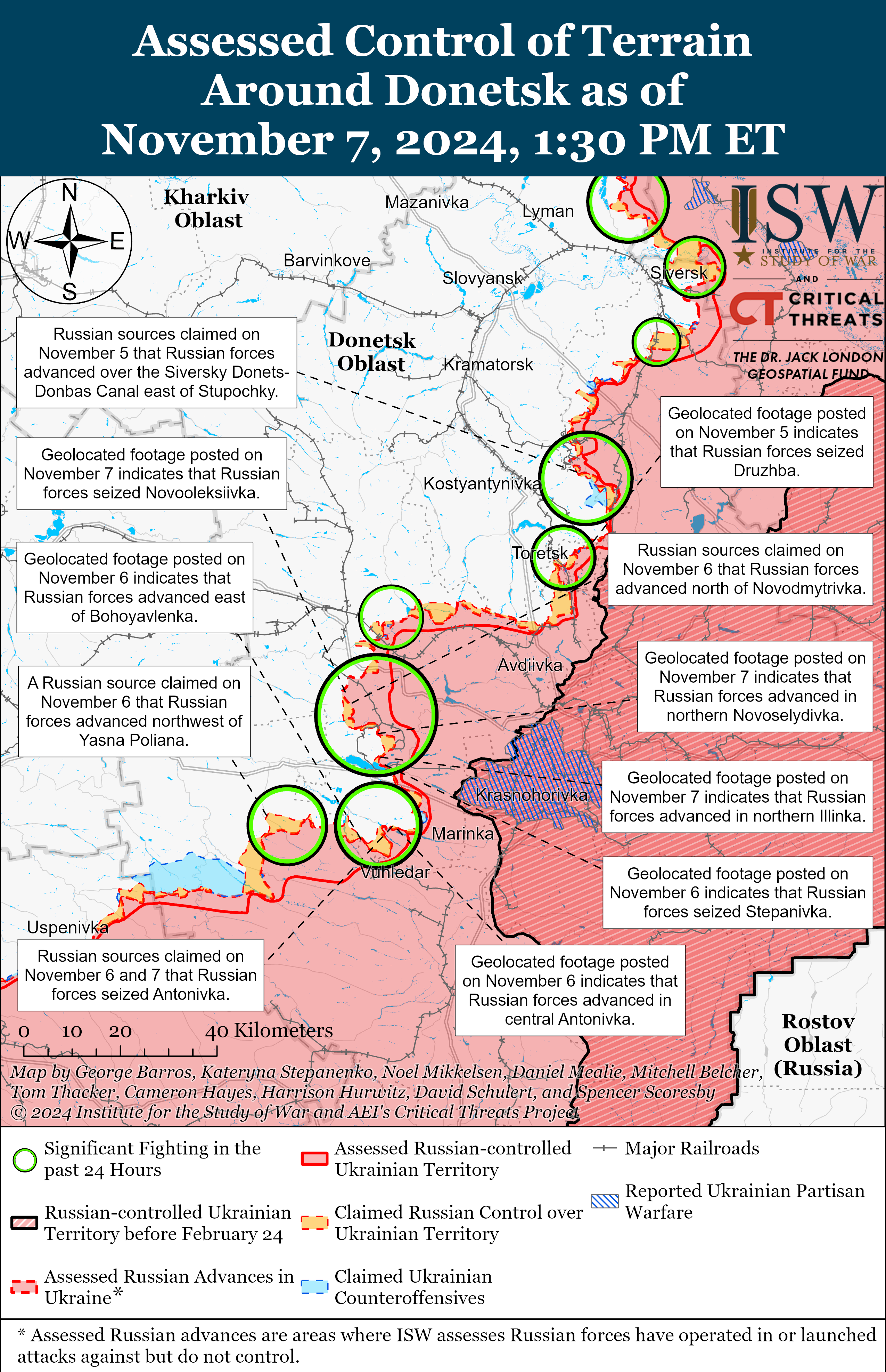 Note: The data cut-off for this product was 1:30pm ET on November 7. ISW will cover subsequent reports in the November 8 Russian Offensive Campaign Assessment.