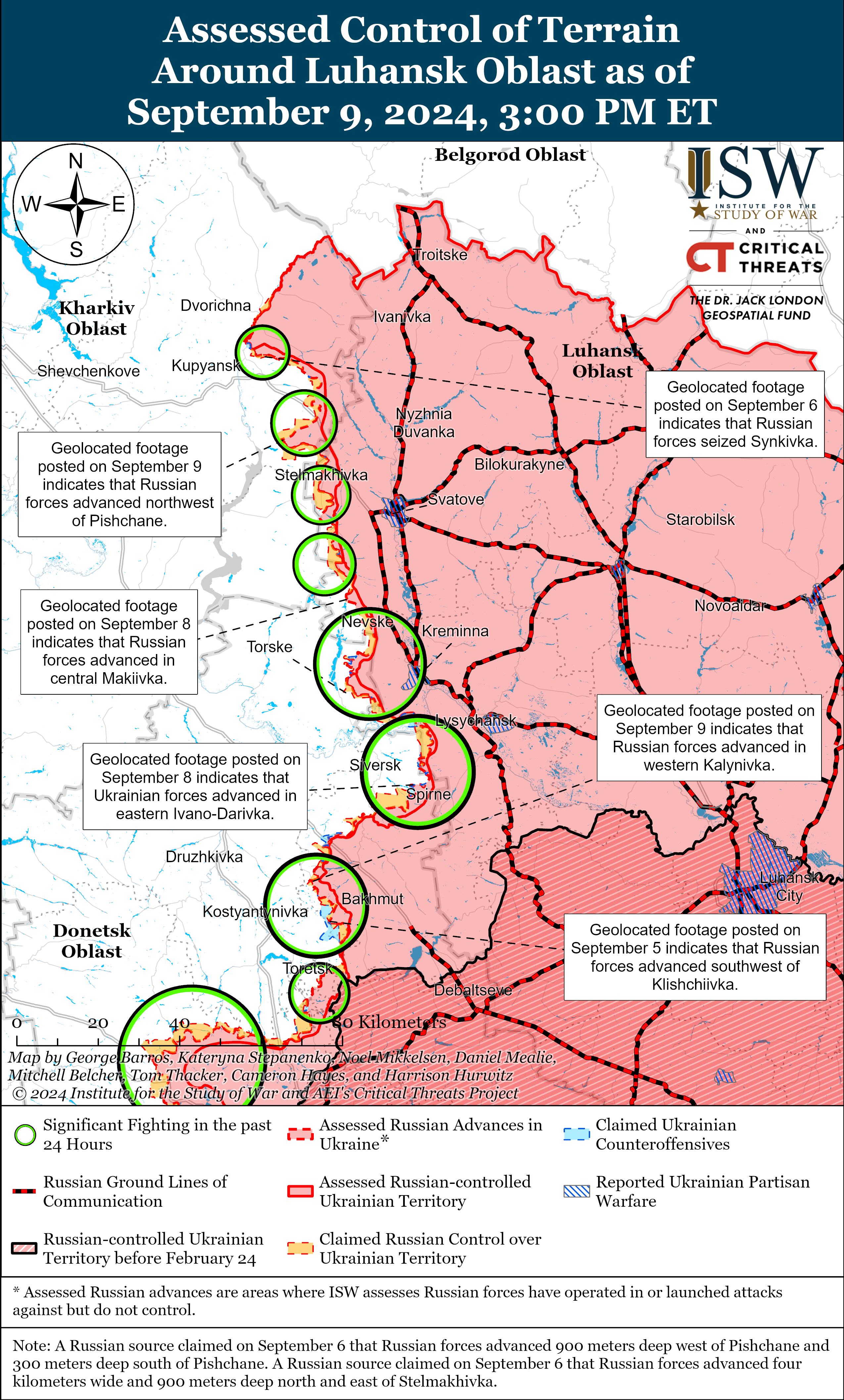 Note: The data cut-off for this product was 2:15pm ET on September 9. ISW will cover subsequent reports in the September 10 Russian Offensive Campaign Assessment.