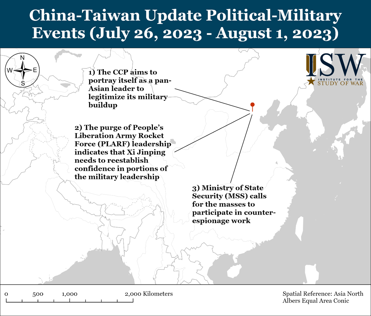 [1] https://www.mod.go.jp/en/publ/w_paper/wp2023/DOJ2023_Digest_EN.pdf[2] https://www.fmprc dot gov.cn/fyrbt_673021/202307/t20230728_11119206.shtml[3] https://www.cnn.com/2023/07/04/china/wang-yi-china-japan-south-korea-intl-hnk/index.html[4] https://www.fmprc dot gov.cn/mfa_eng/wjbxw/202302/t20230220_11027664.htmlhttps://www.globaltimes dot cn/page/202304/1288378.shtml[5] https://www.scmp dot com/news/china/military/article/3229150/chinese-anti-corruption-investigators-target-top-rocket-force-generals-sources-say[6] https://www.scmp dot com/news/china/military/article/3229515/china-unveils-new-pla-rocket-force-leadership-after-former-commanders-snared-corruption-scandal#:~:text=Wang%20Houbin%2C%20the%20navy’s%20former,commissar%2C%20state%20broadcaster%20CCTV%20reported.https://www.chinadaily dot com.cn/a/202307/31/WS64c7879fa31035260b8197ee.html[7] https://www.ft.com/content/279a90a3-c550-40a2-9484-8a6eebca628b[8] http://www.qstheory dot cn/yaowen/2023-07/25/c_1129766661.htmhttp://www.qstheory dot cn/dukan/hqwg/2023-07/27/c_1129770940.htm[9] https://www.gov dot cn/yaowen/liebiao/202308/content_6896005.htmhttp://www.81 dot cn/yw_208727/16241549.html[10] https://www.channelnewsasia dot com/asia/china-wants-mobilise-entire-nation-counter-espionage-3668821https://www.globaltimes dot cn/page/202308/1295465.shtml?utm_source=substack&utm_medium=emailhttps://mp.weixin dot qq.com/s/KHGKLZ2q98giMAaJTIVJ3g?utm_source=substack&utm_medium=email[11] https://understandingwar.org/backgrounder/china-taiwan-weekly-update-july-20-2023#:~:text=The%20China%E2%80%93Taiwan%20Weekly%20Update,relevant%20cross%E2%80%93Taiwan%20Strait%20developments.&text=Foxconn%20founder%20Terry%20Gou%20published,between%20the%20ROC%20and%20PRC.https://understandingwar.org/backgrounder/china-taiwan-weekly-update-july-13-2023#:~:text=The%20China%E2%80%93Taiwan%20Weekly%20Update,relevant%20cross%E2%80%93Taiwan%20Strait%20developments.&text=1.,in%20the%20Taiwanese%20presidential%20election.[12] https://www.12339 dot gov.cn/index?utm_source=substack&utm_medium=email