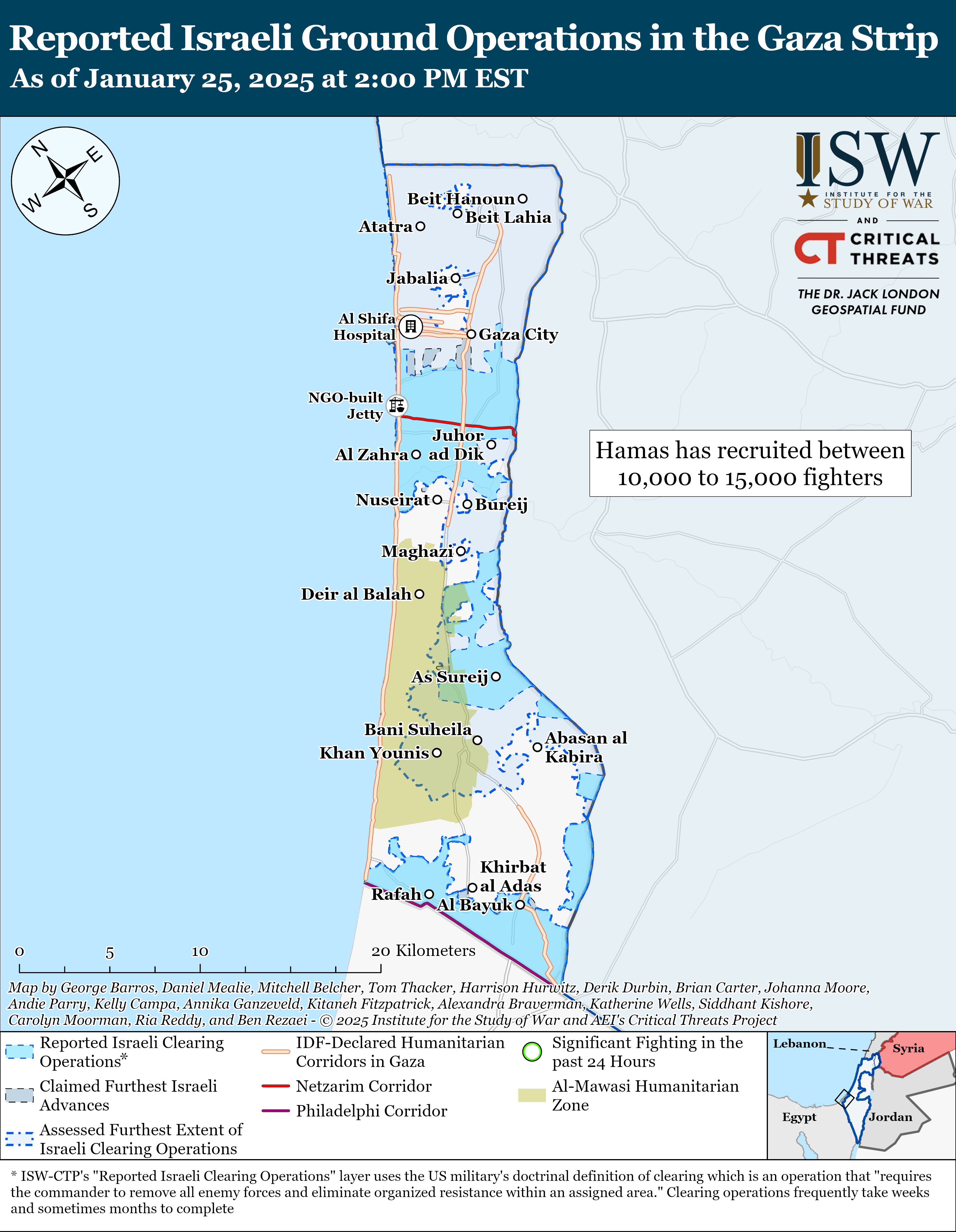 CTP-ISW has recorded no verifiable reports of kinetic activity in the Gaza Strip or attacks from the Gaza Strip into Israel since the last data cut off on January 24.