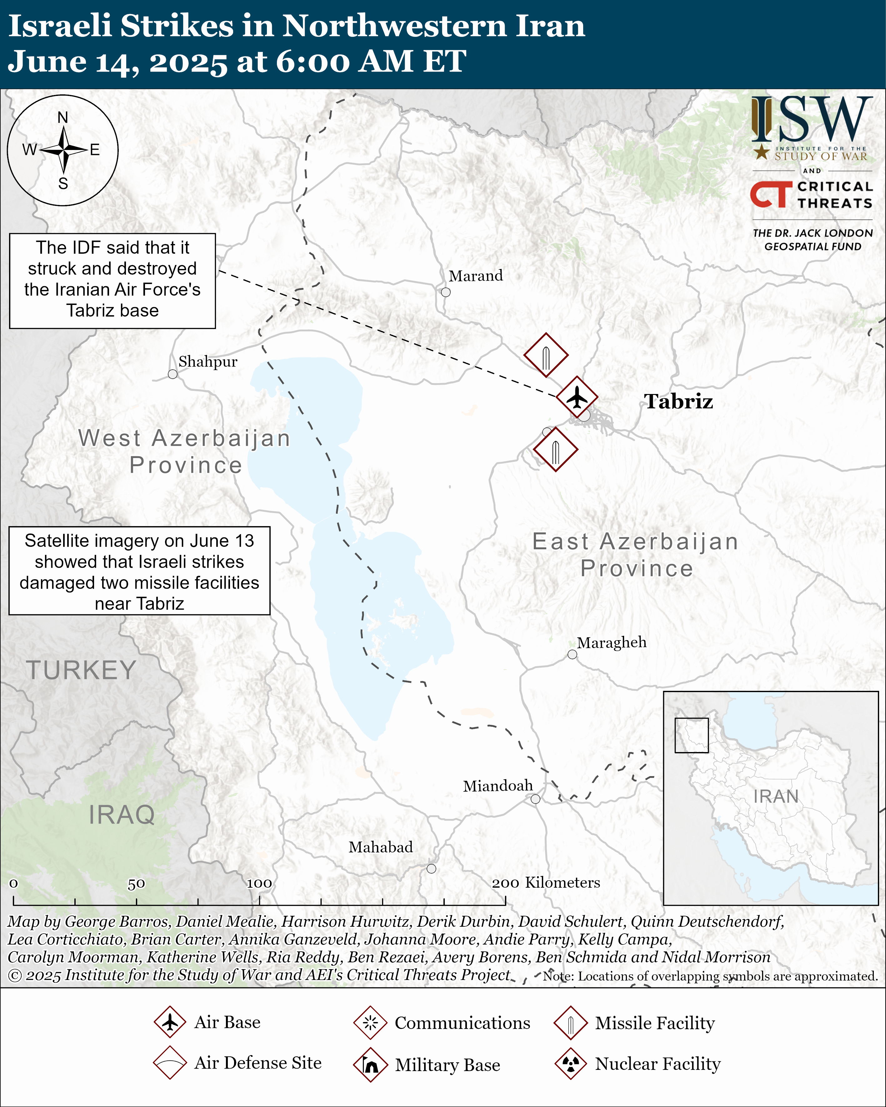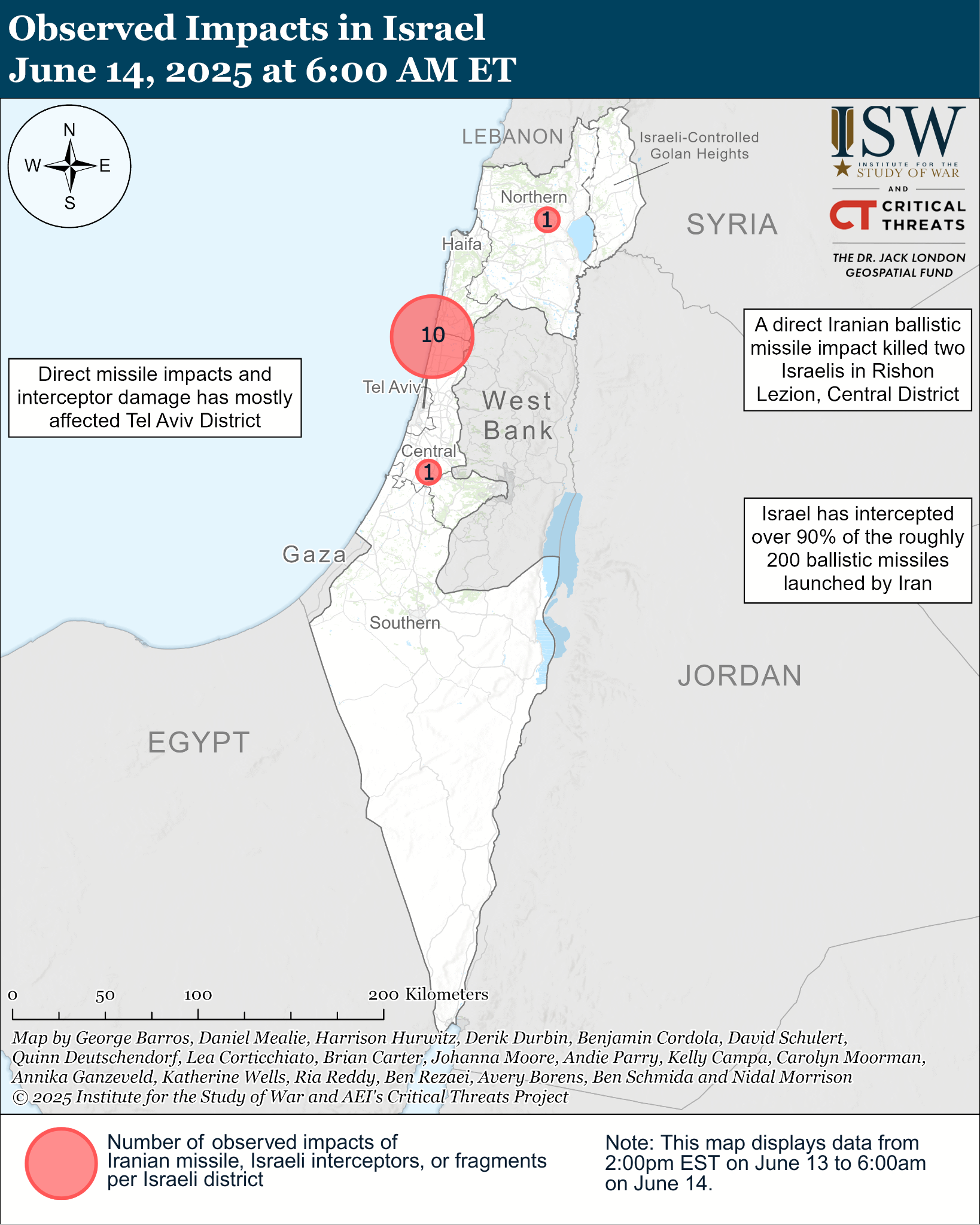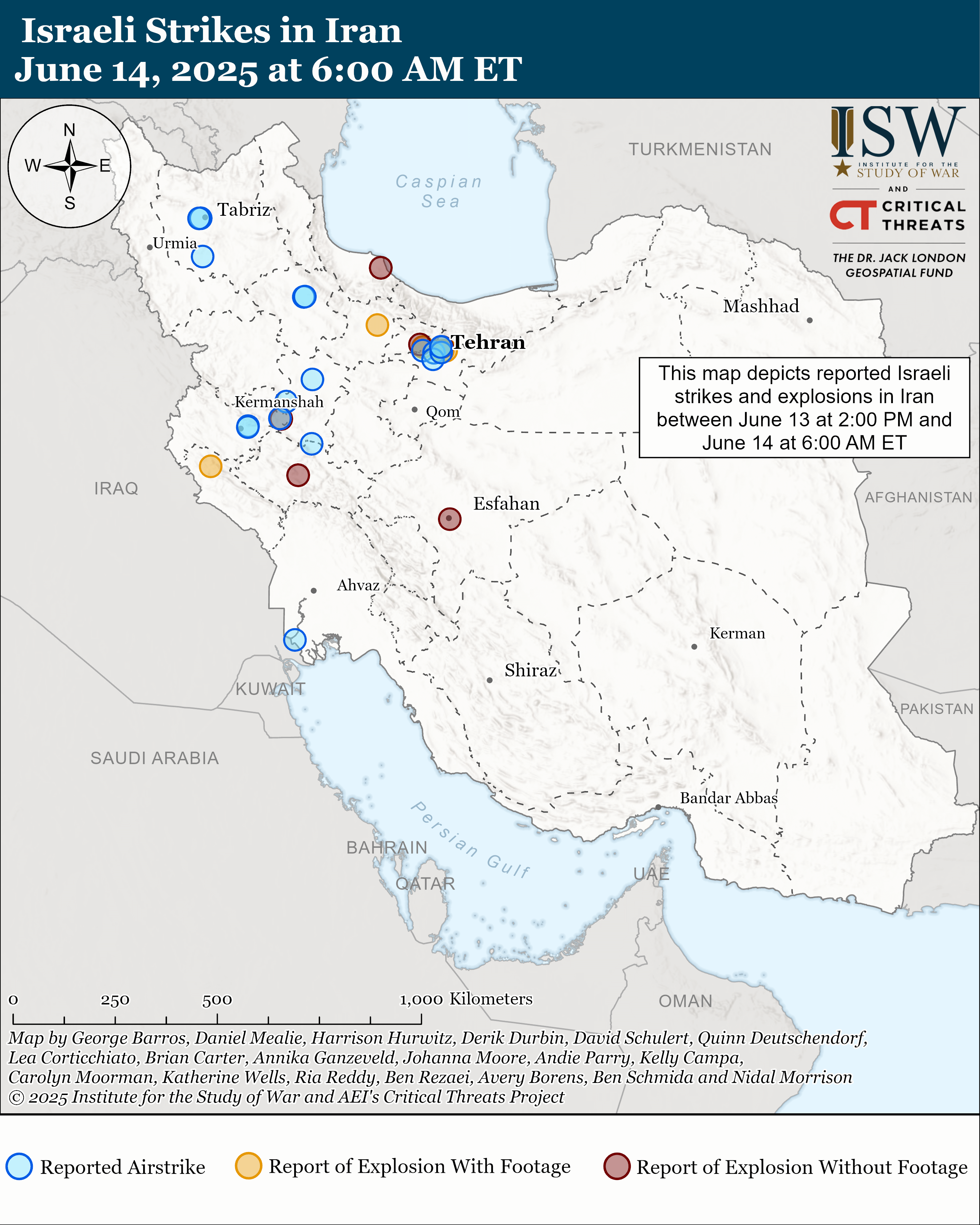 We will produce two updates per day while conditions in the Middle East warrant it. This first update covers events between 2:00 PM ET on June 13 and 6:00 AM ET on June 14. The second update will cover events between 6:00 AM ET and 6:00 PM ET on June 14.