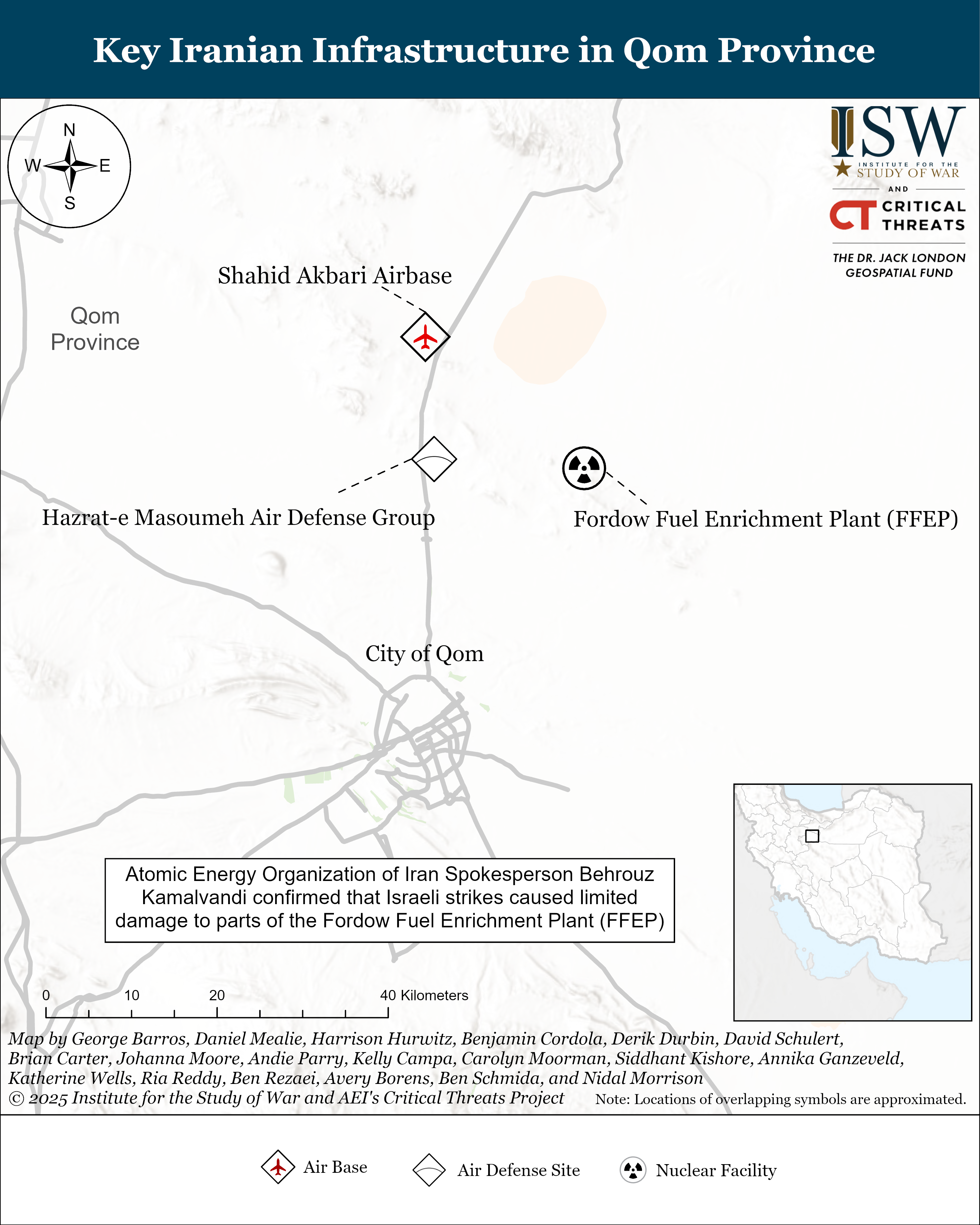 The Critical Threats Project (CTP) at the American Enterprise Institute and the Institute for the Study of War (ISW) will be publishing two updates per day while conditions in the Middle East warrant it. Our updates will provide insights into the ongoing strike on Iran’s nuclear facilities, military infrastructure, and key military and nuclear program leadership. We will prioritize covering Iranian and Iranian-sponsored activities in response to the attacks that threaten US forces and interests.