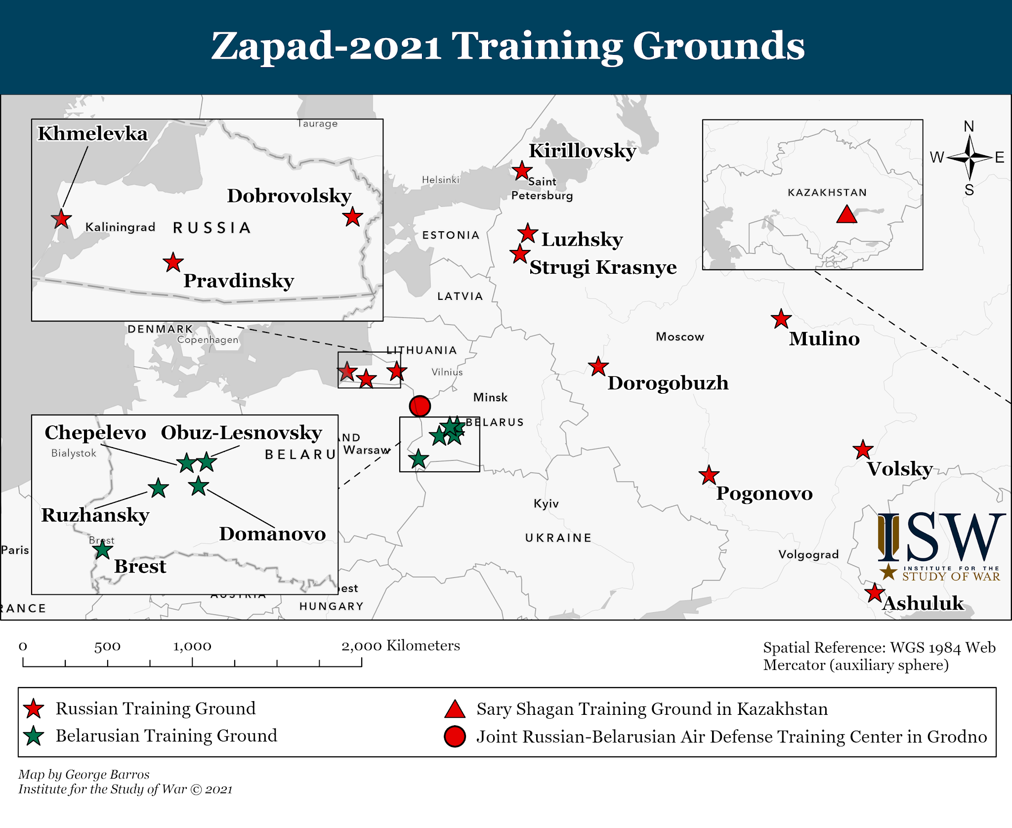 - Russian and Belarusian military police began conducting joint patrols and implementing security measures to uphold military discipline at the training grounds where Zapad-2021 occurred.[29]