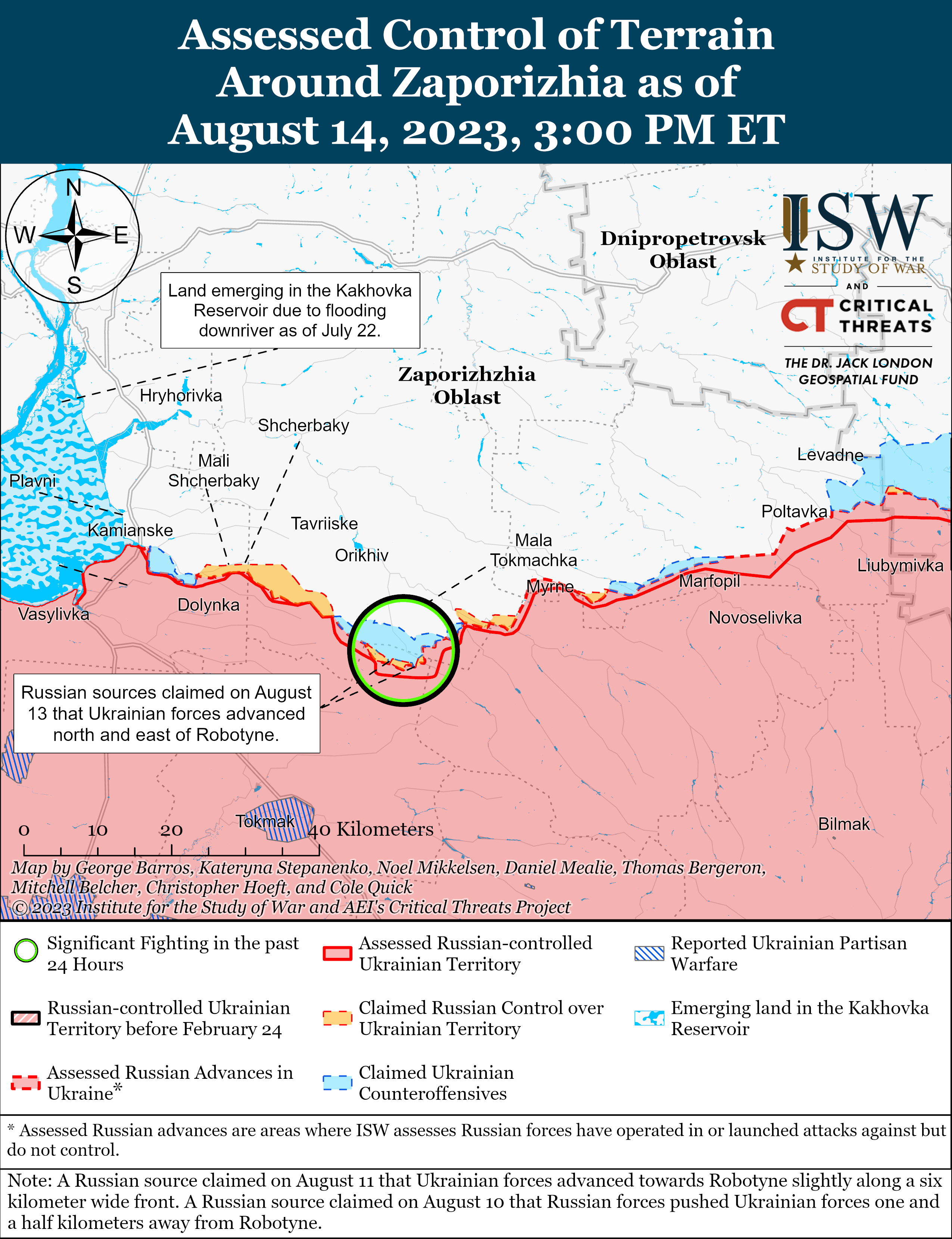 Note: The data cutoff for this product was 1pm ET on August 14. ISW will cover subsequent reports in the August 15 Russian Offensive Campaign Assessment.