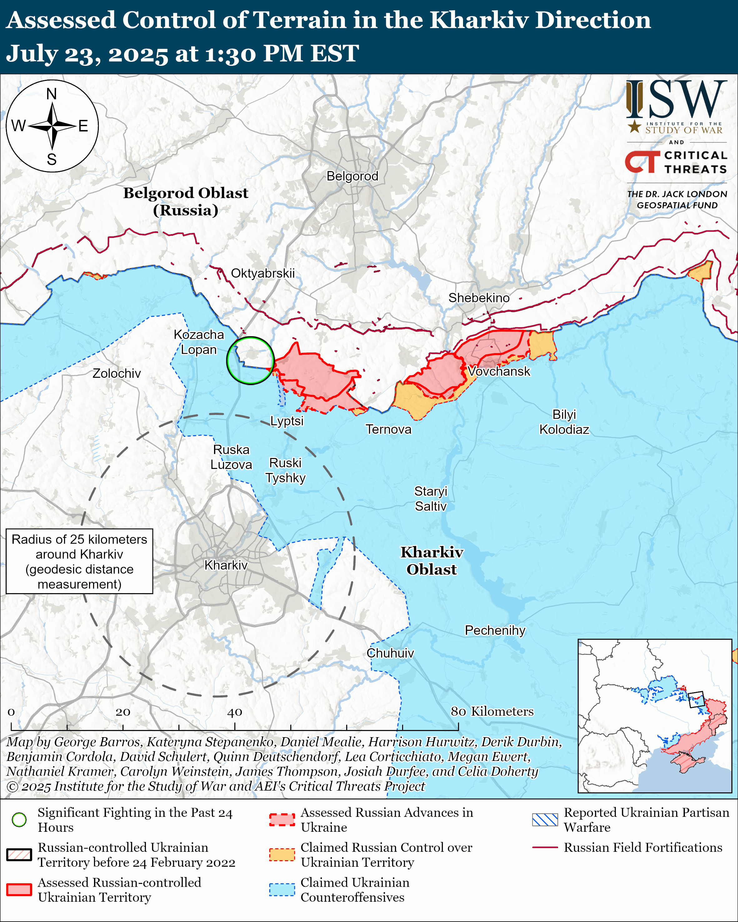 ; https://t.me/warriorofnorth/10395; https://t.me/rybar/72335 ; https://t.me/dva_majors/75890 ; https://t.me/warriorofnorth/10395 ; https://understandingwar.org/backgrounder/russian-offensive-campaign-assessment-july-22-2025