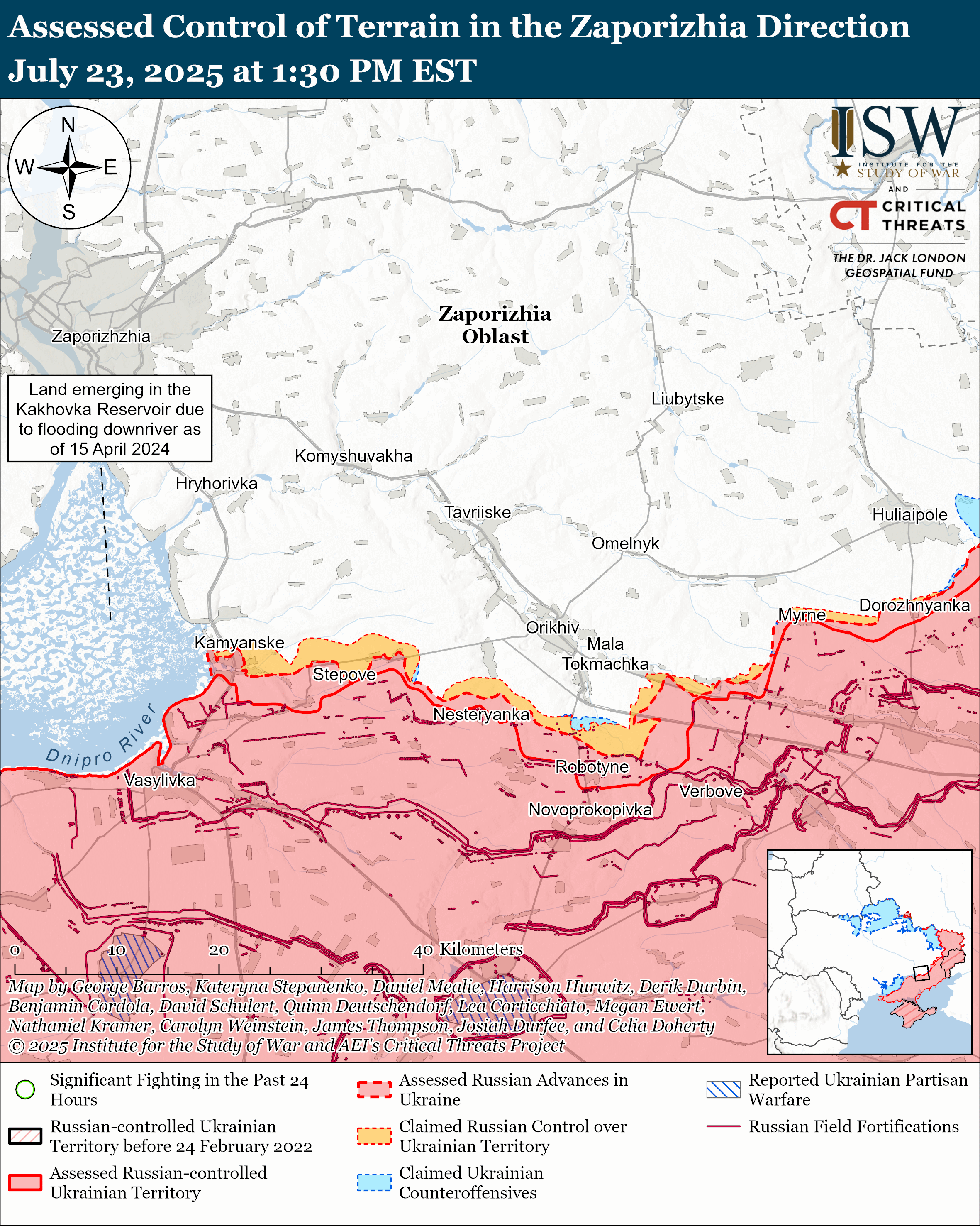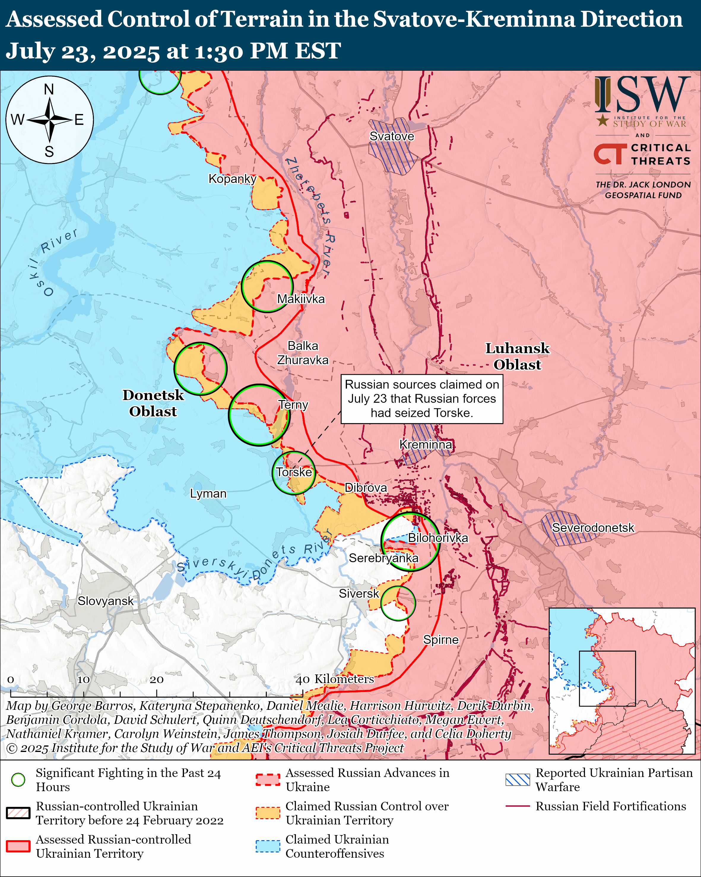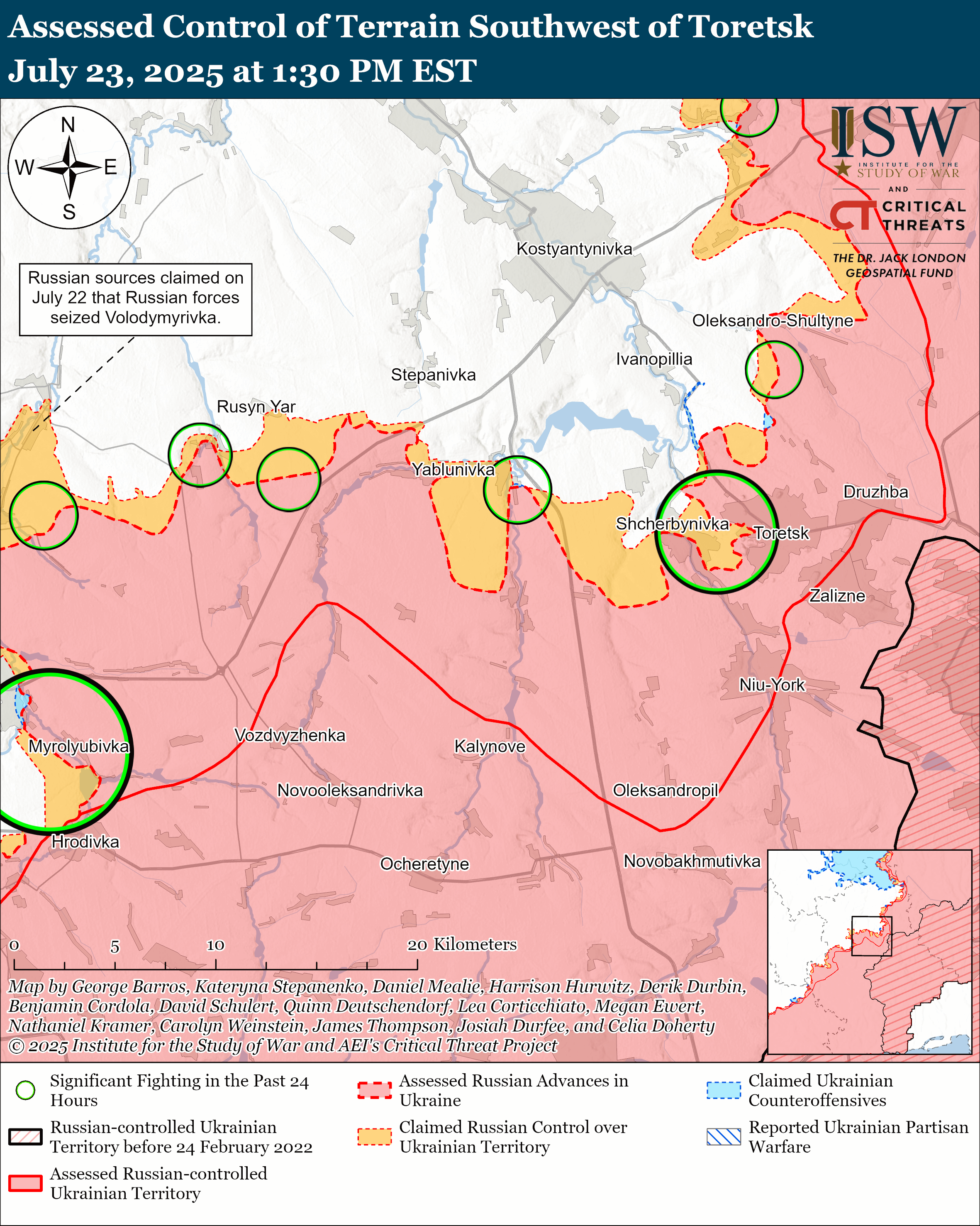 Note: The data cut-off for this product was 12:45 pm ET on July 23. ISW will cover subsequent reports in the July 24 Russian Offensive Campaign Assessment.